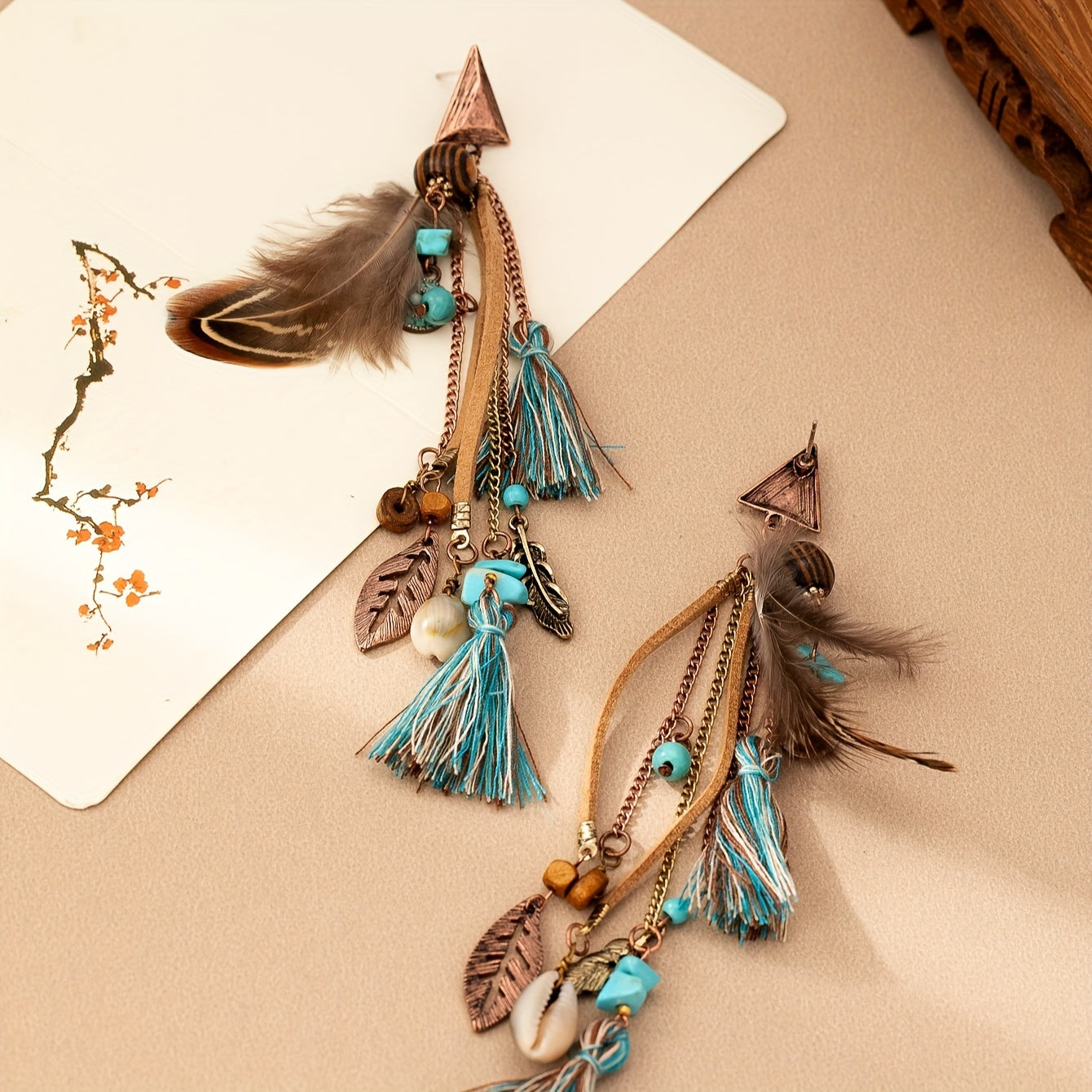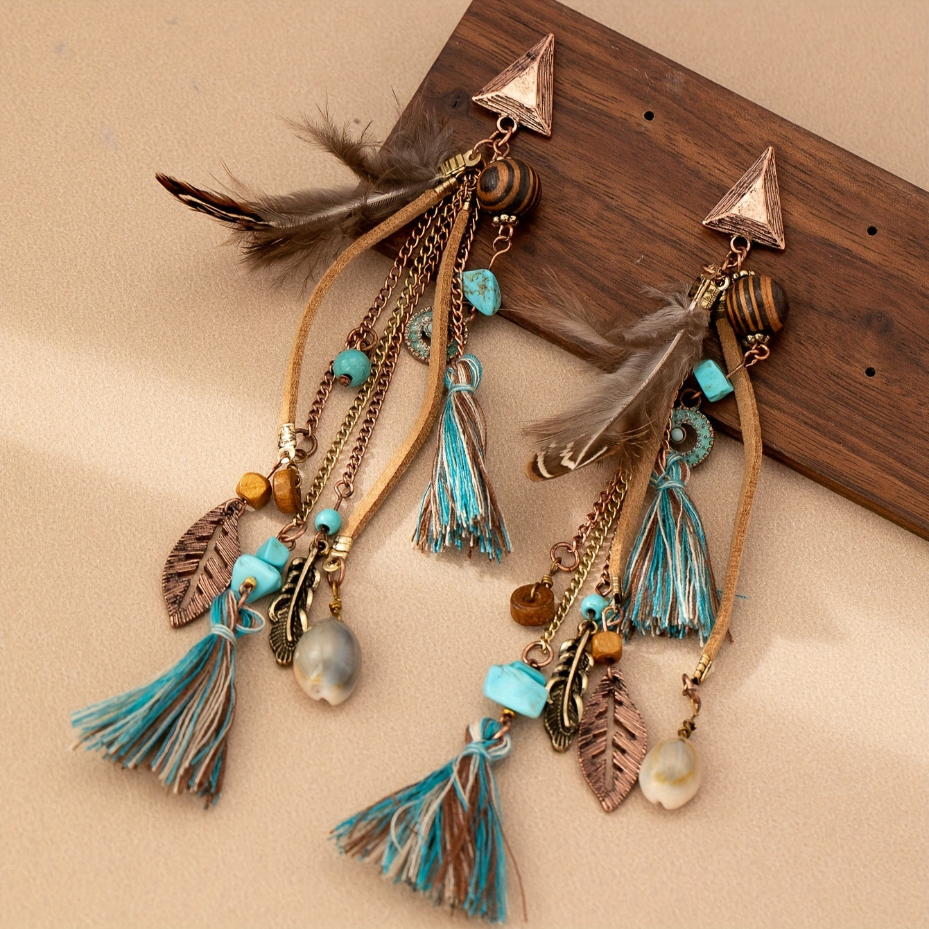 These vintage-style earrings feature alloy feathers and tassels, making them perfect for casual attire or gifting to a loved one.