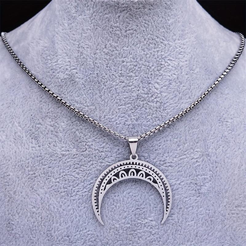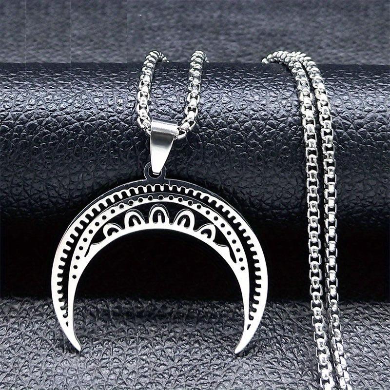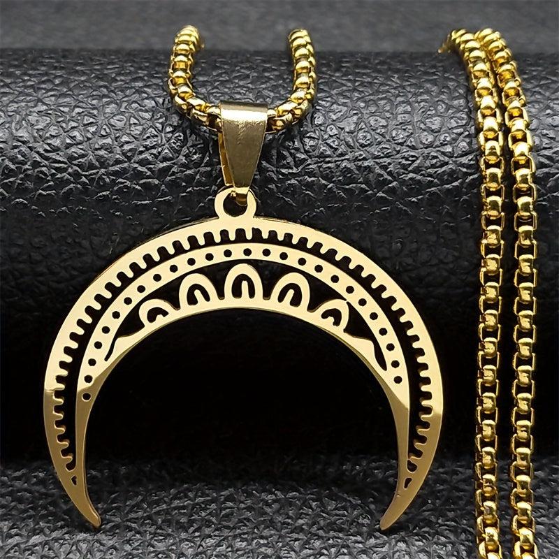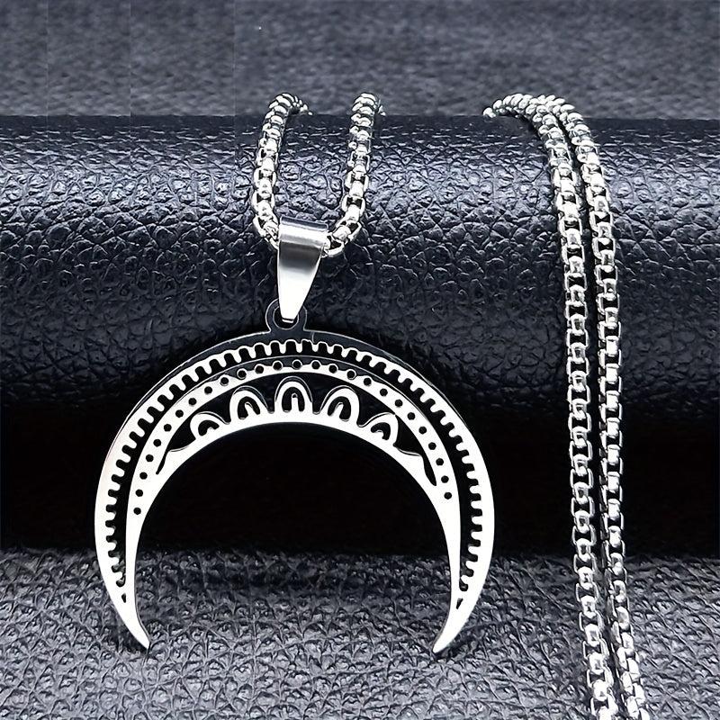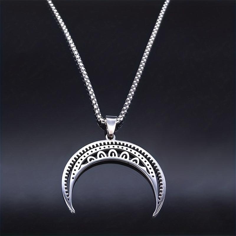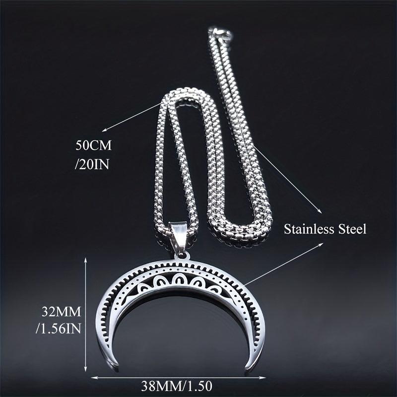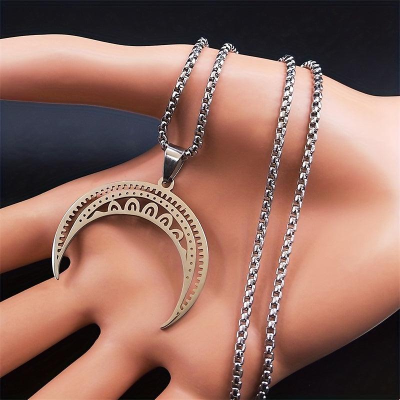 Embrace a celestial vibe with this boho hollow moon pendant necklace. Crafted from stainless steel, this bohemian style jewelry is perfect for daily wear or as a Valentine's gift.