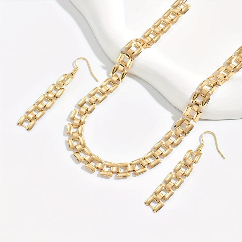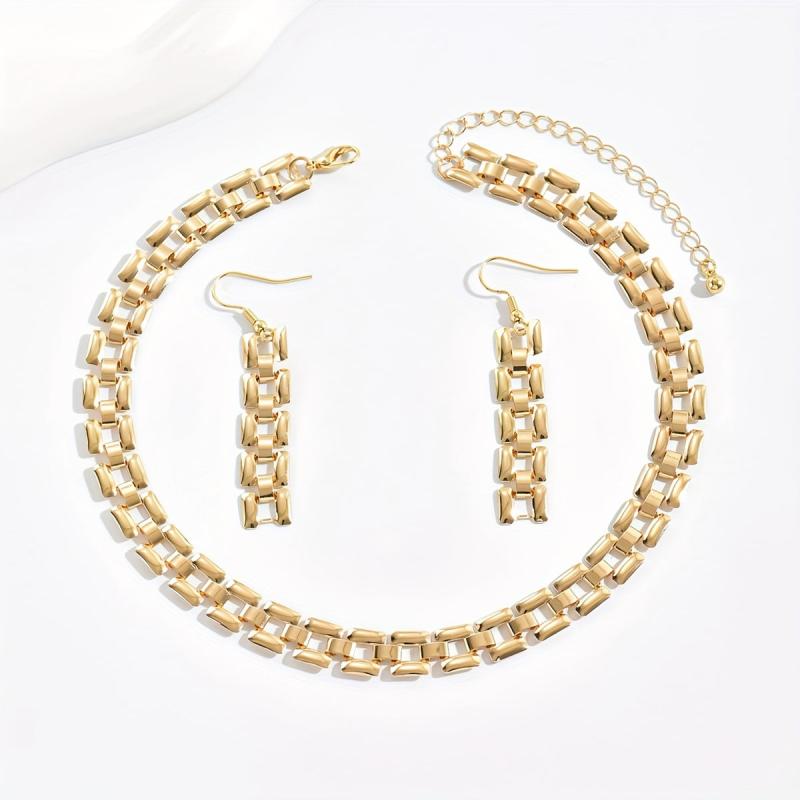 Add a touch of bohemian charm to your look with this iron chain link necklace and earrings set. Perfect for daily wear or music festivals.