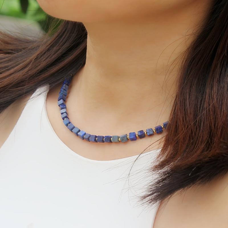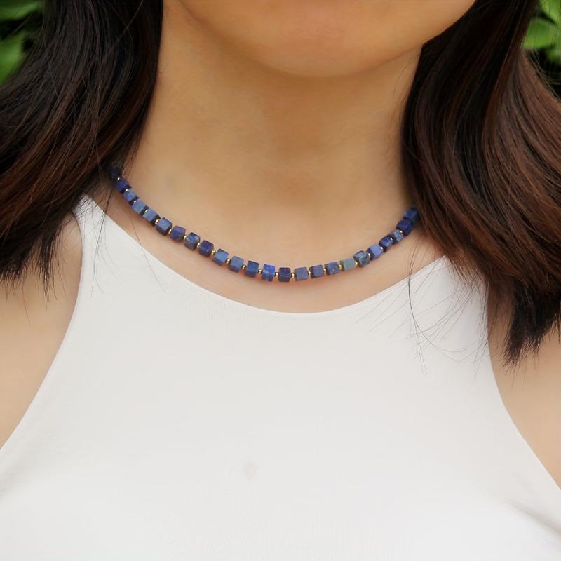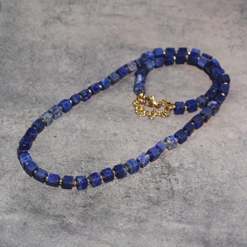 Elegant pendant necklace featuring a lapis lazuli gemstone on a beaded chain, perfect for daily wear and gift giving. Versatile for all seasons.