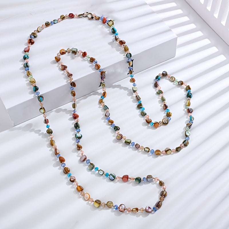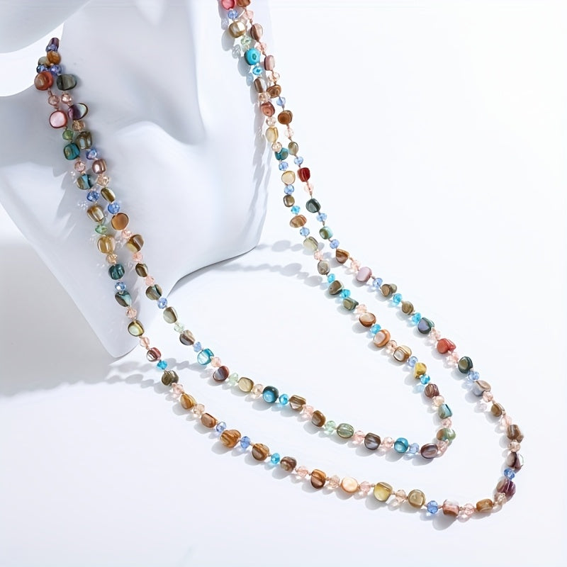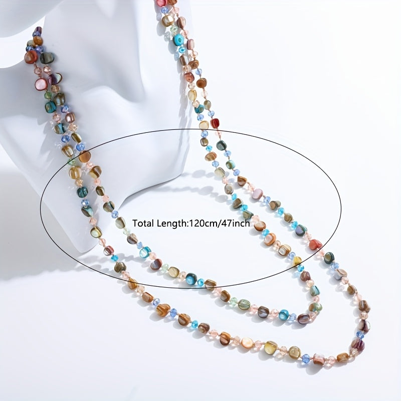 Add a pop of color with this vintage boho style long sweater necklace featuring multicolored beads. Perfect for daily wear or vacation outfits.