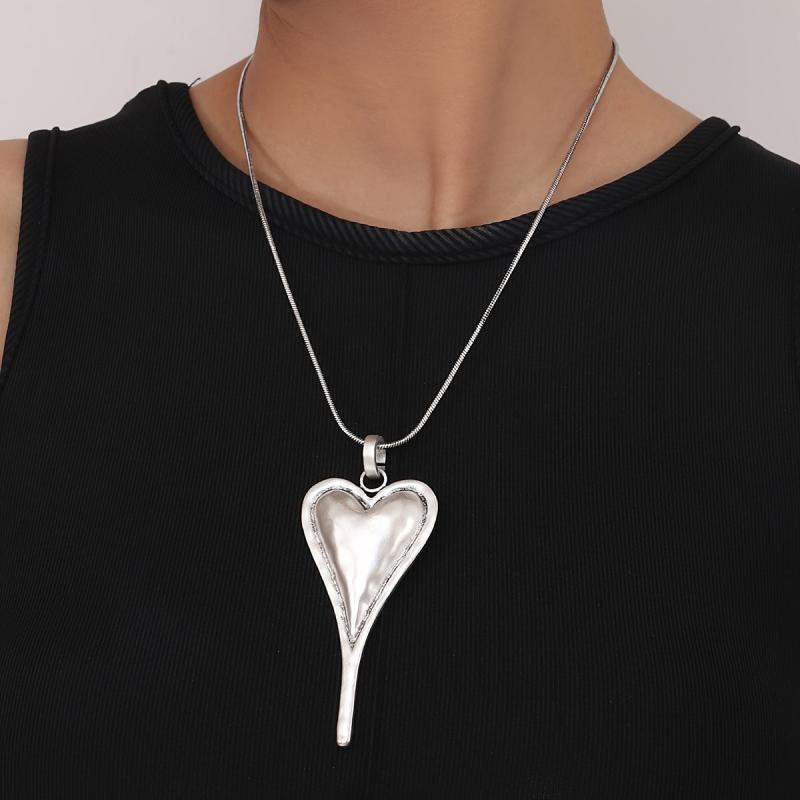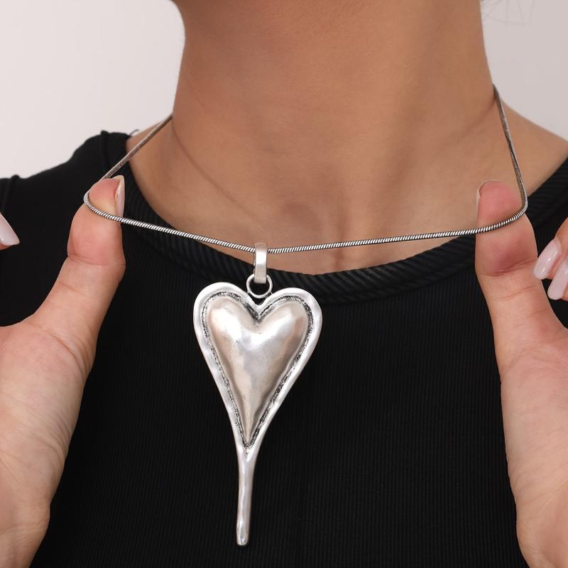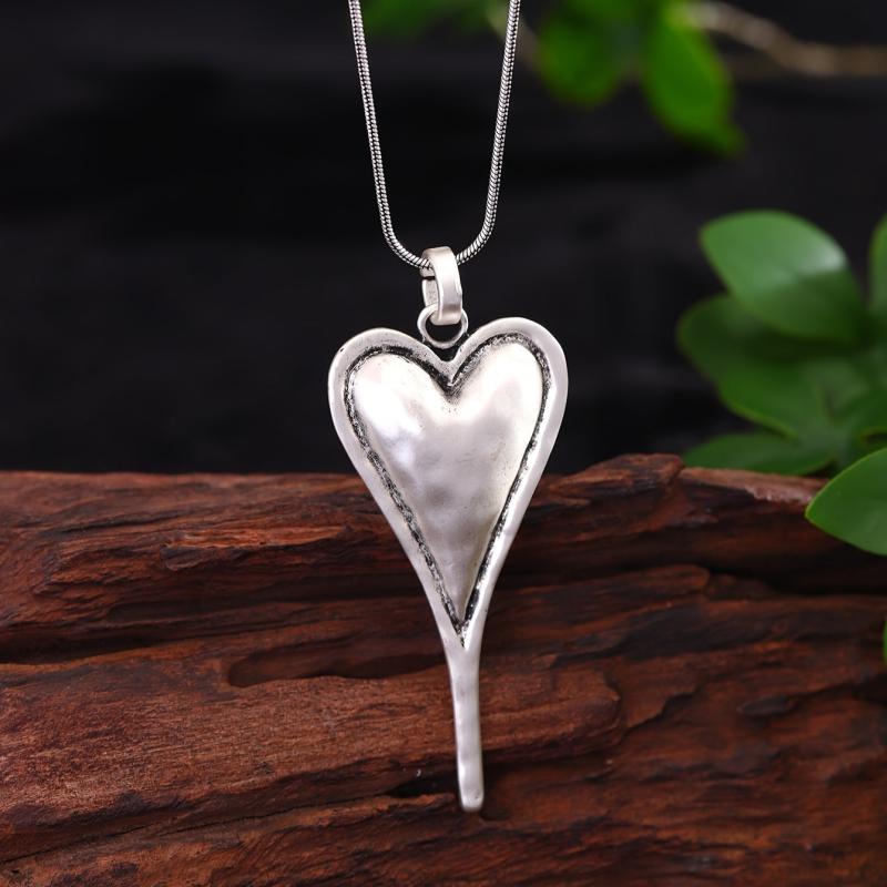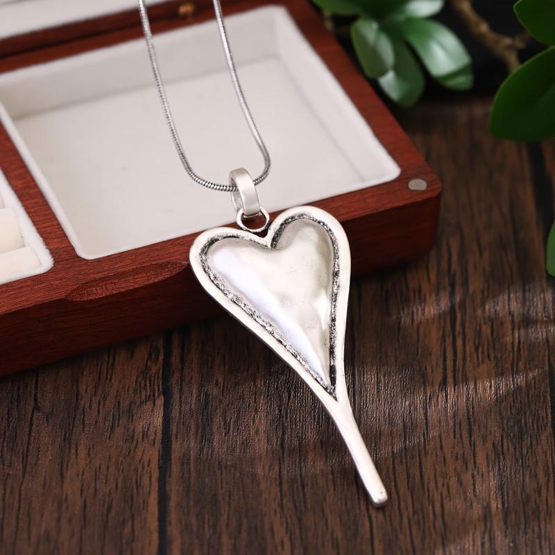 Boho Style Heart Pendant Necklace with Snake Chain Silver Plated