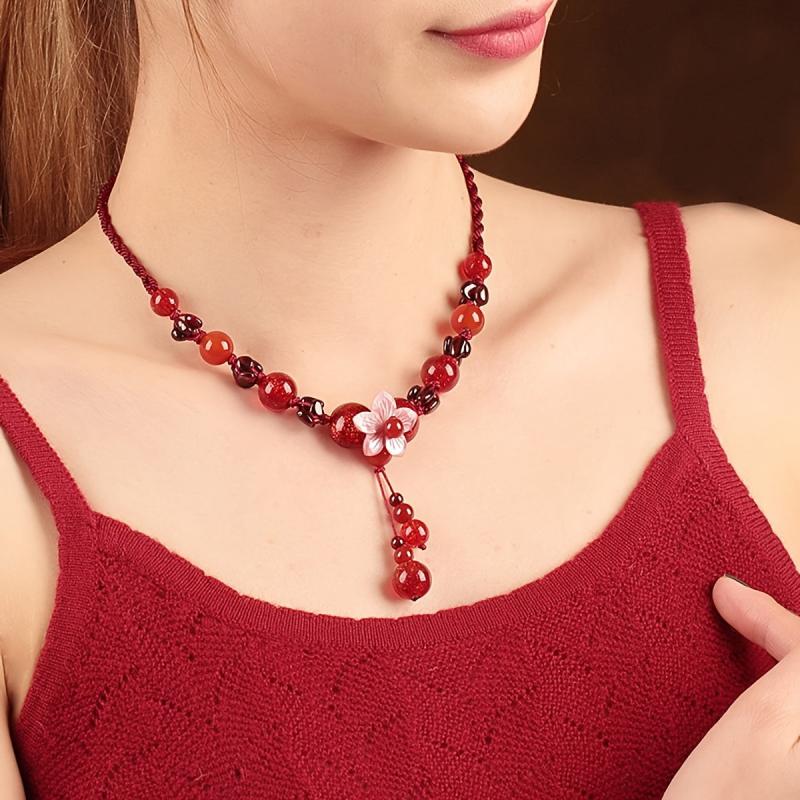 This boho style red flower choker necklace features a stone pendant, making it perfect for daily wear. It is a versatile accessory that is suitable for all seasons and makes a great gift for Valentine's Day.