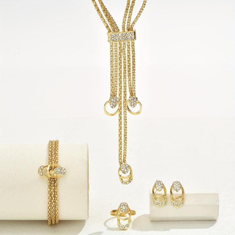 Elevate your style with this Japan and South Korea inspired jewelry set featuring moissanite accents. Perfect for parties and holidays!