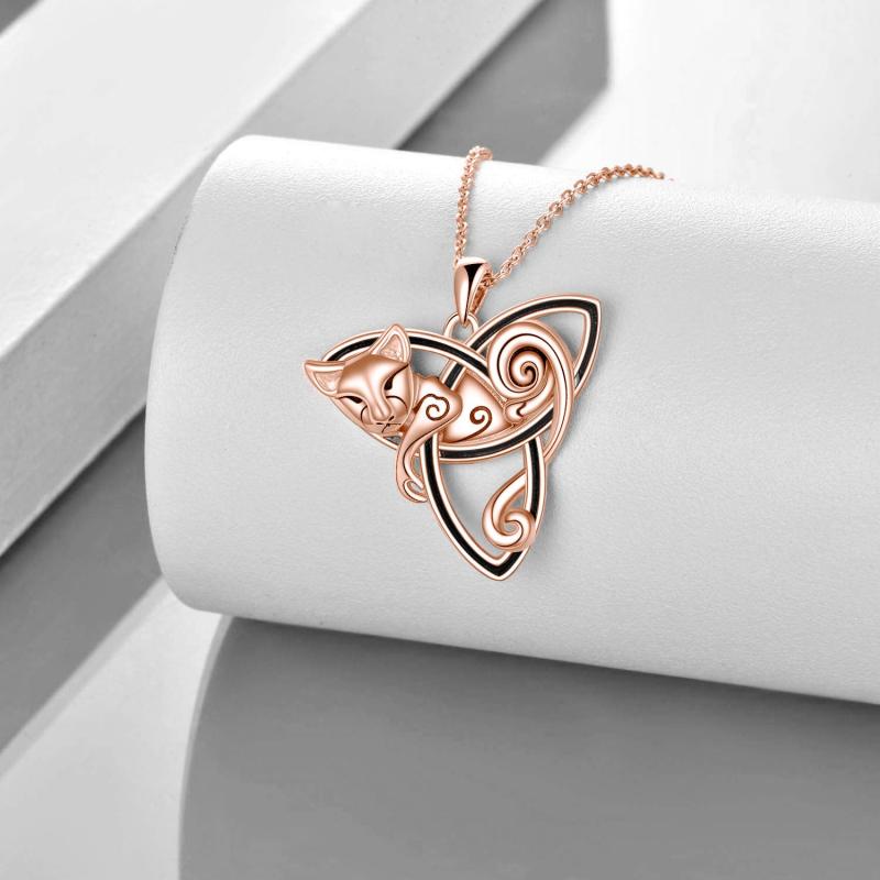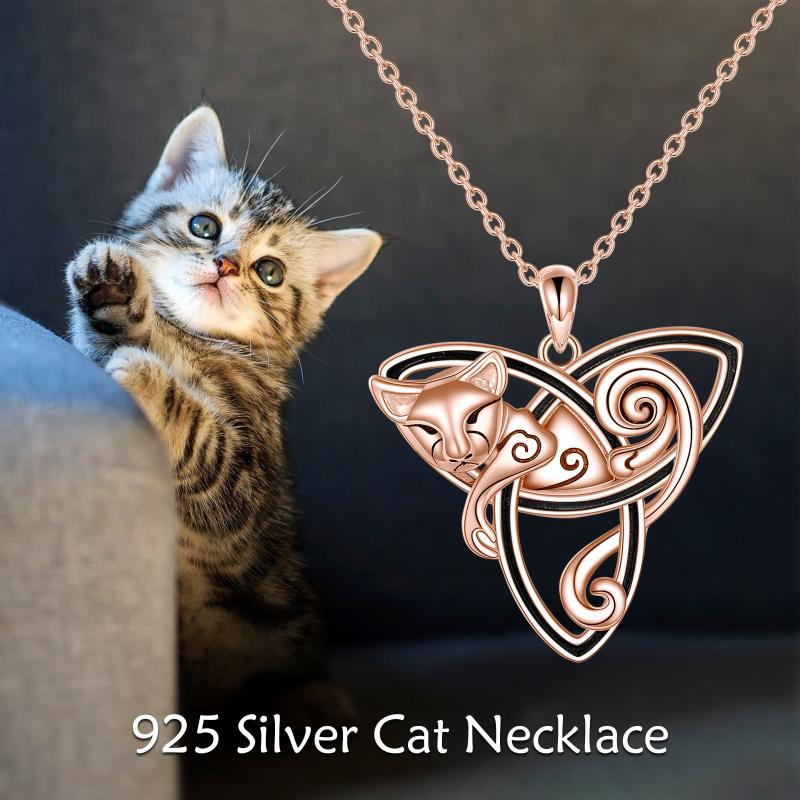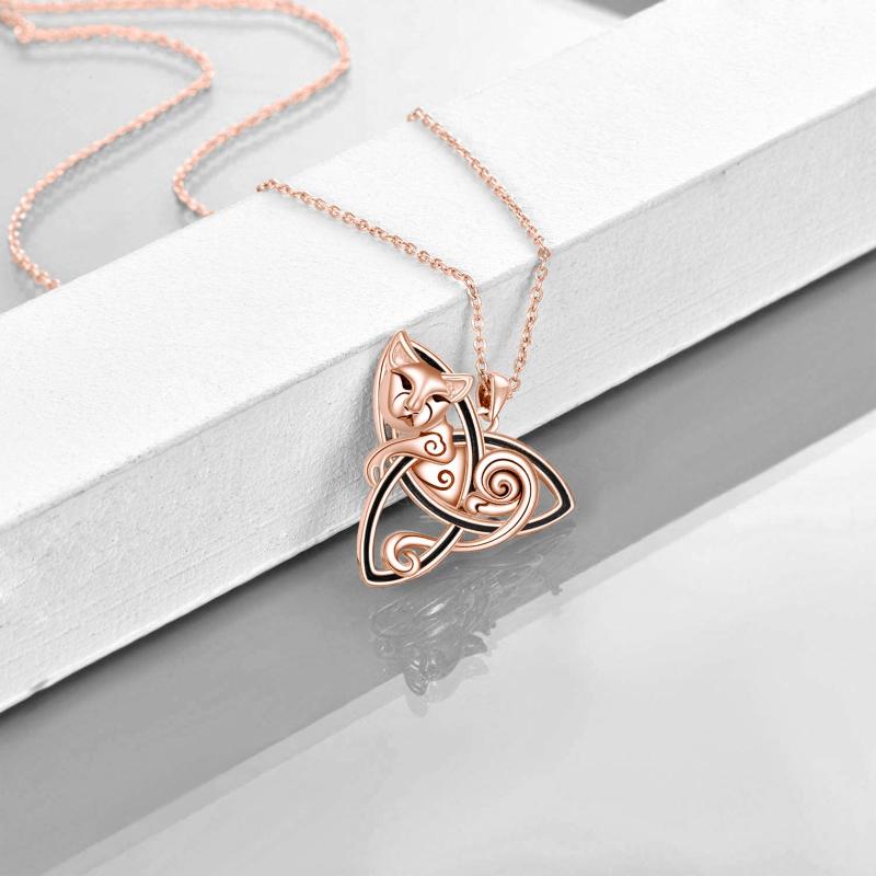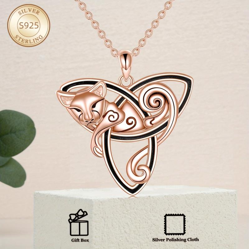 This Celtic cat necklace features a beautiful sterling silver triquetra knot pendant, making it a unique and stylish piece of jewelry for women.