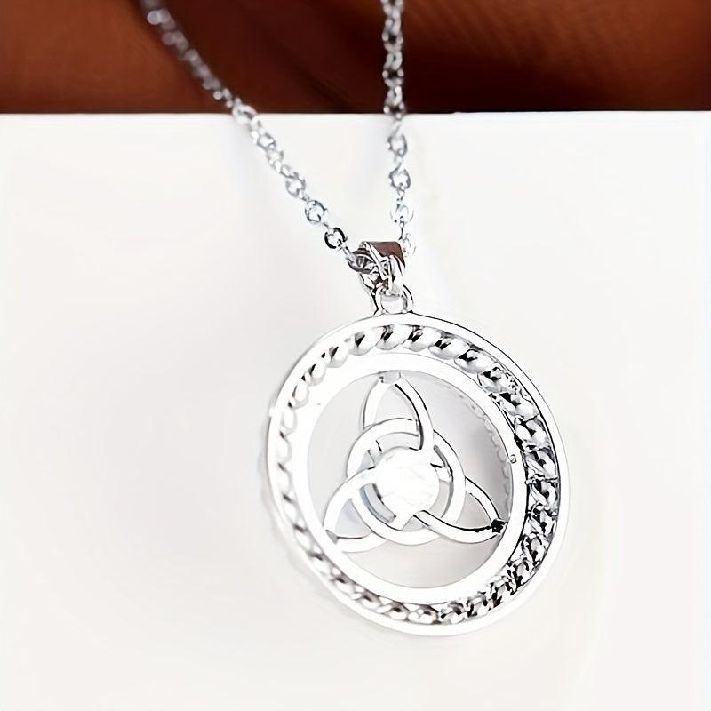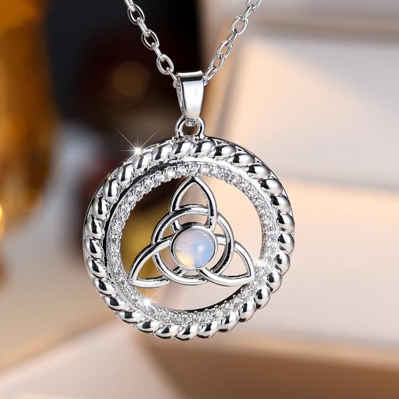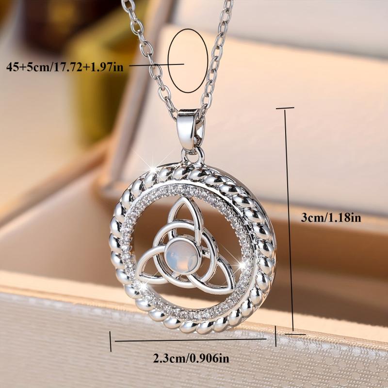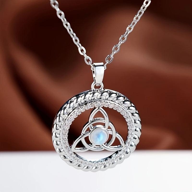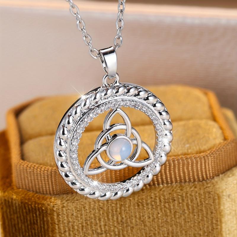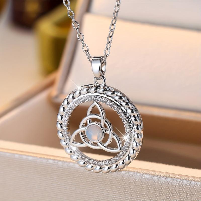 This stunning necklace features an intricate Celtic knot design with synthetic cubic zirconia stones. Perfect for everyday wear or special occasions.