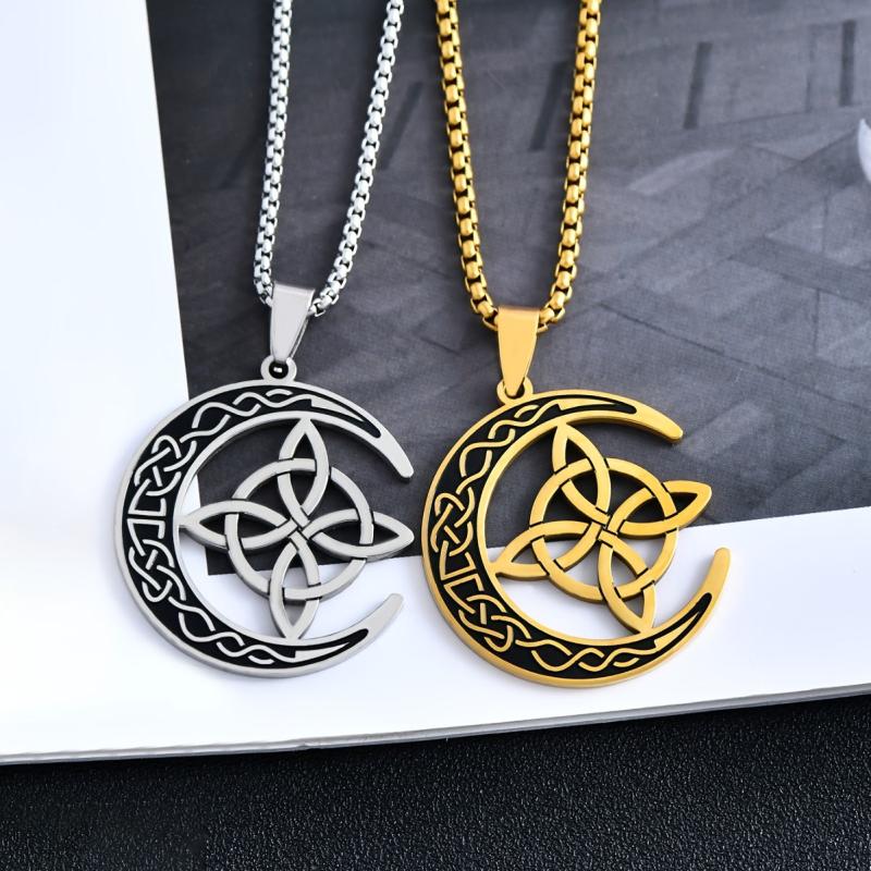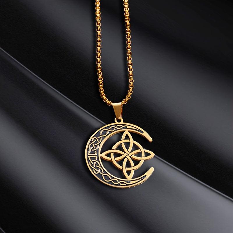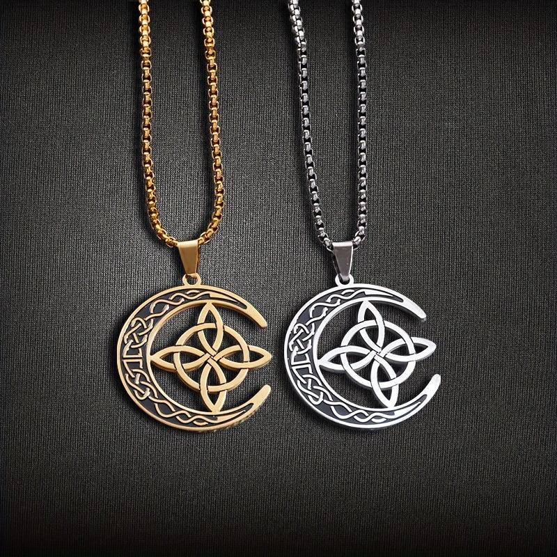 Embrace the power of Celtic witchcraft with this pendant necklace featuring a witch knot design paired with the moon. Perfect for men and women seeking a mystical accessory.