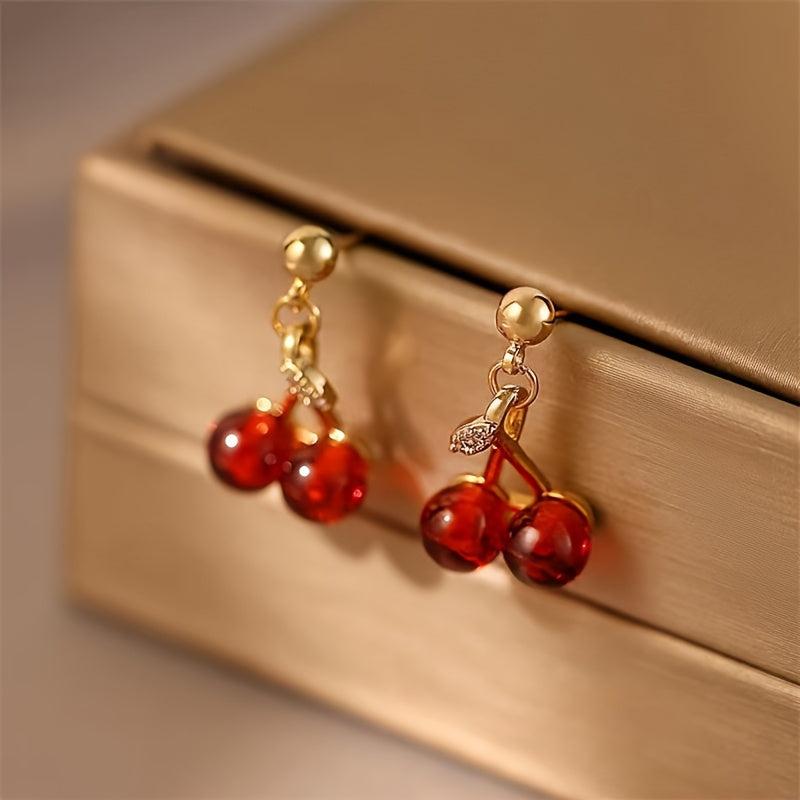 • 3-piece jewelry set with cherry pendant necklace and earrings