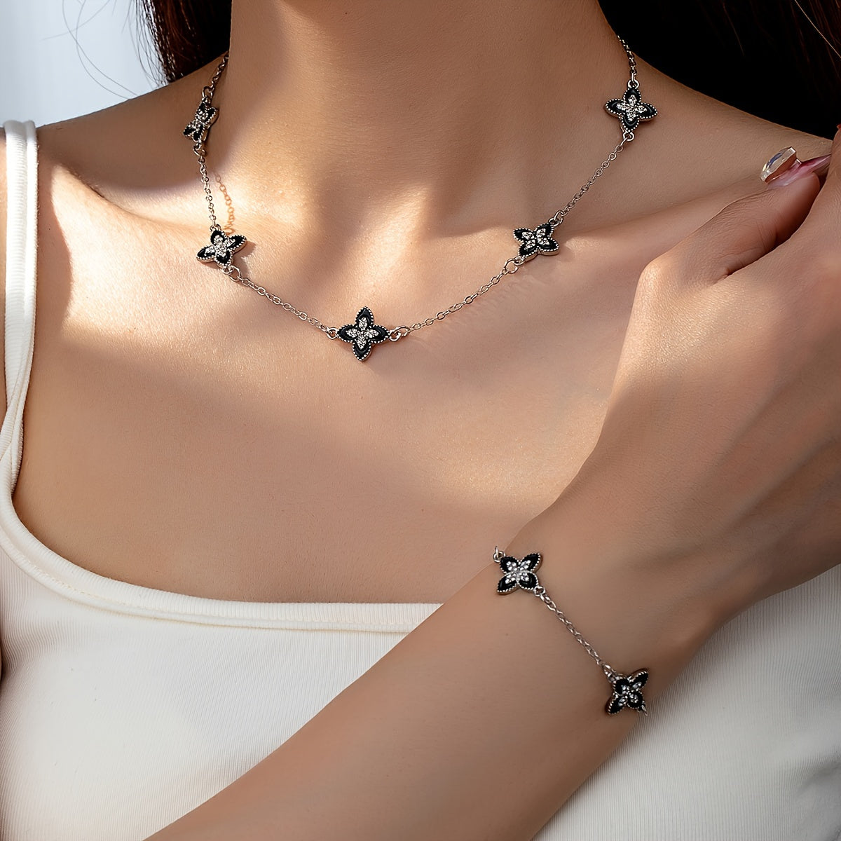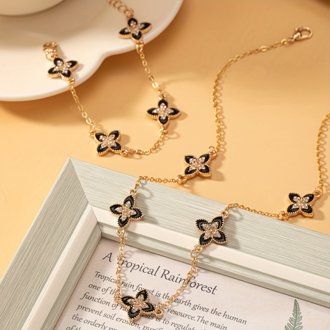 Elevate your everyday look with this minimalist four leaf clover jewelry set. It's versatile and stylish, perfect for daily wear.
