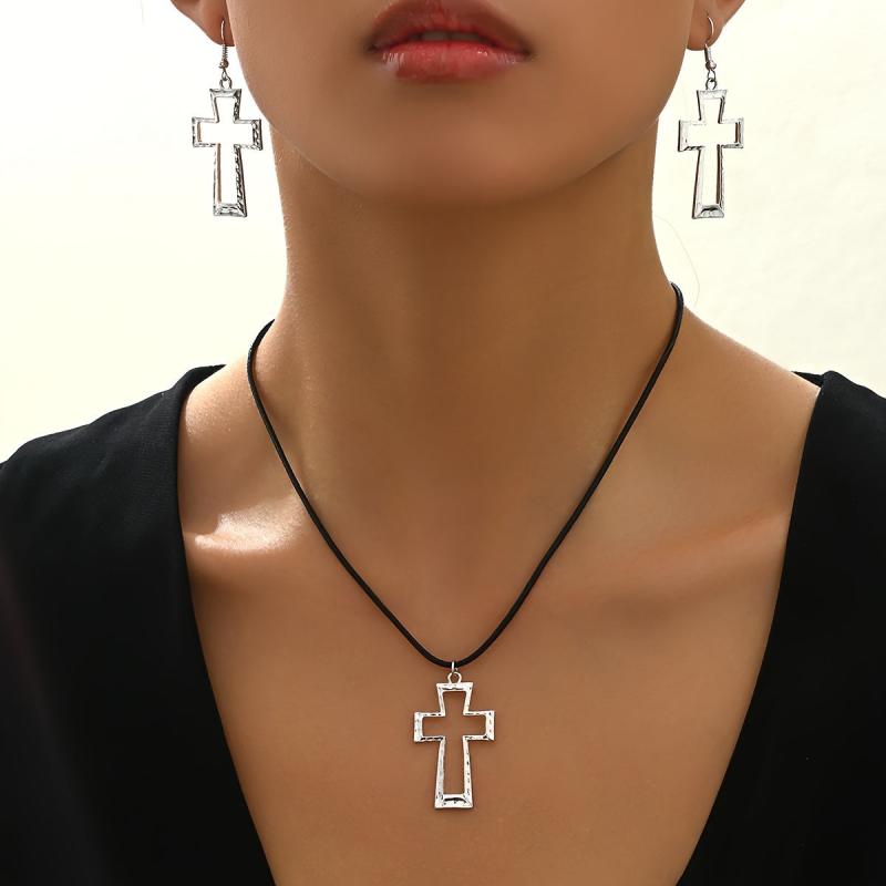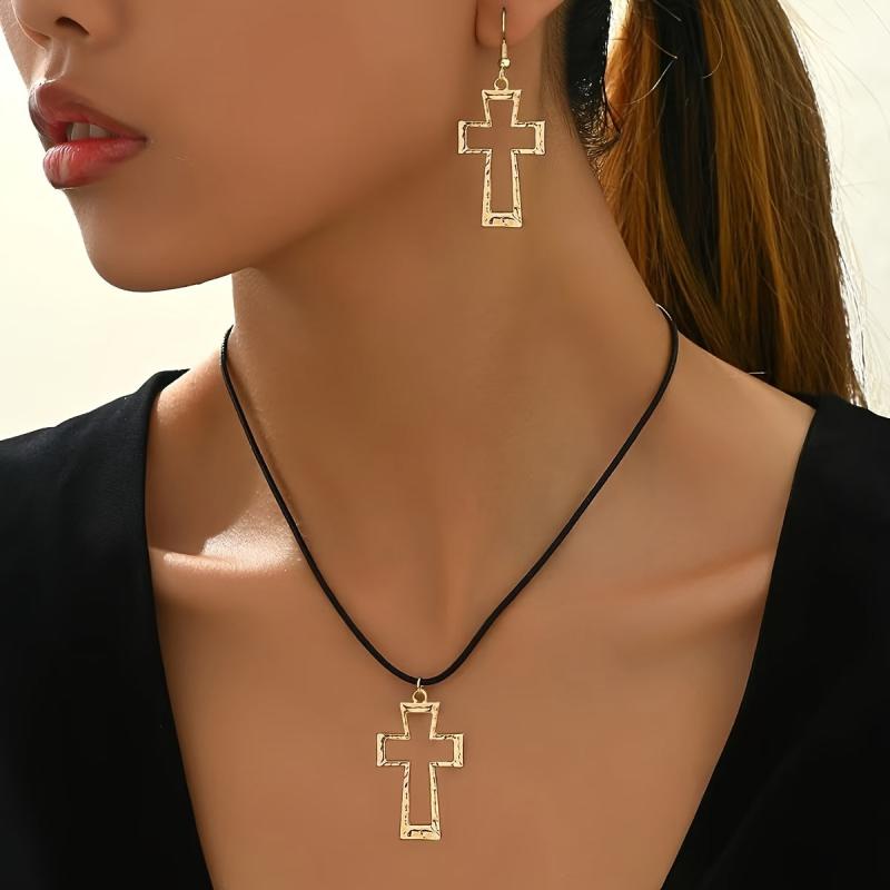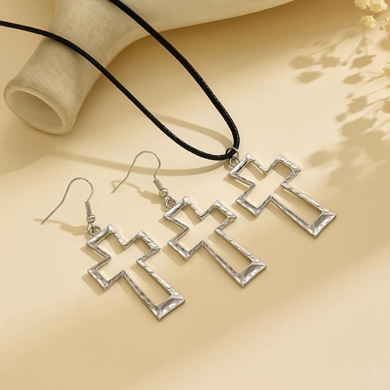 Elevate your style with this retro-inspired set featuring a hollow out cross design. Perfect for adding a touch of elegance to any outfit.