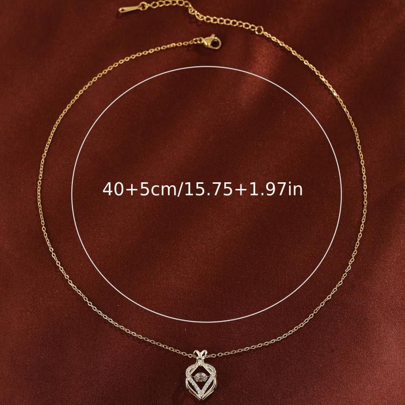 Chinese Heart Money Bag Pendant Necklace Synthetic Zirconia Crystals Women Gift