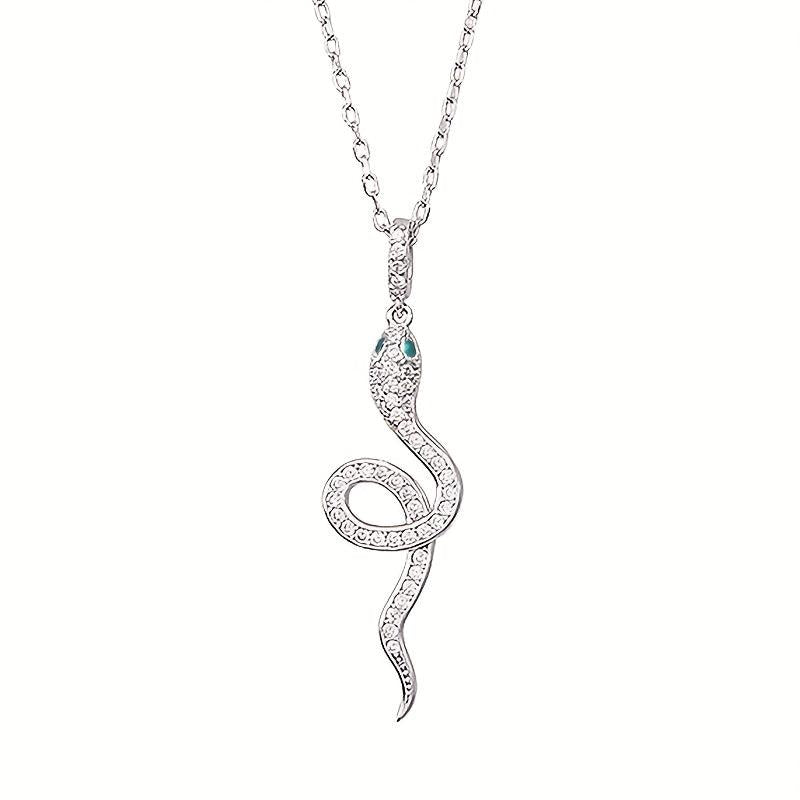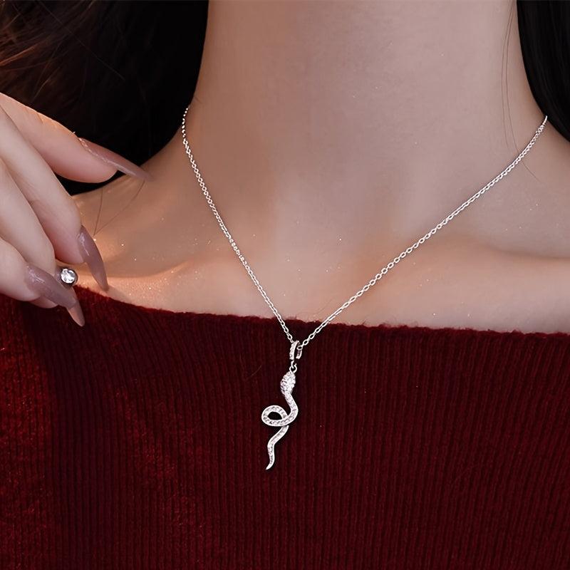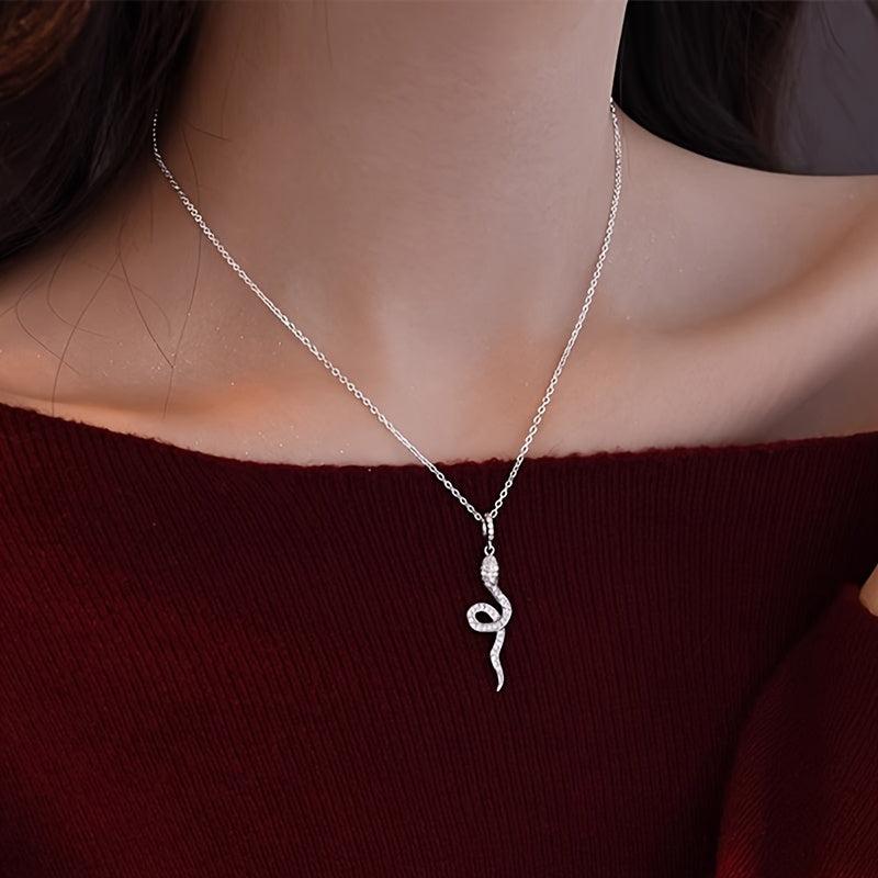 This elegant necklace features a snake charm design with a synthetic zirconia pendant. Perfect for daily wear or as a thoughtful gift.