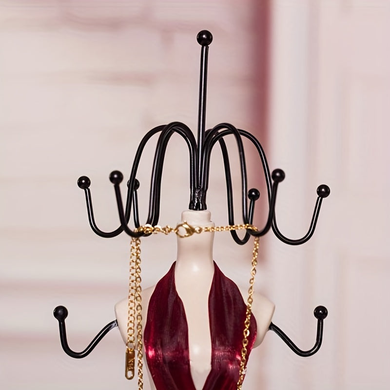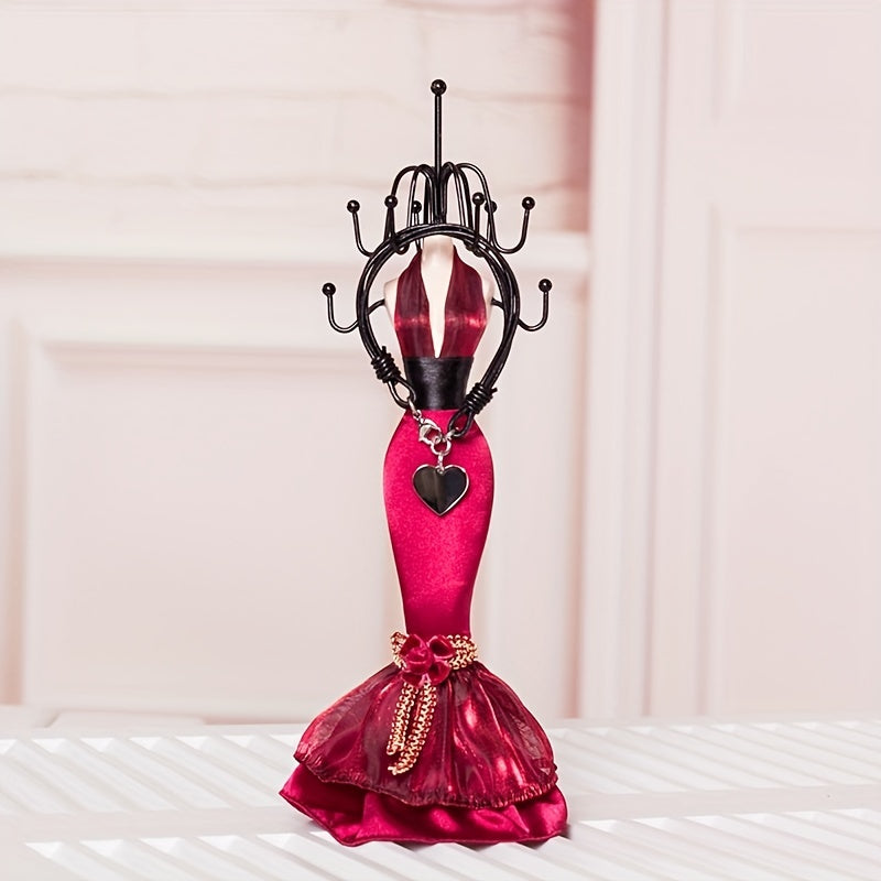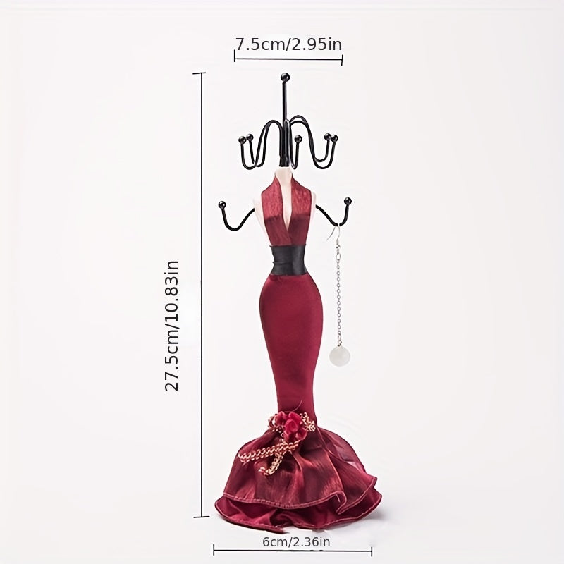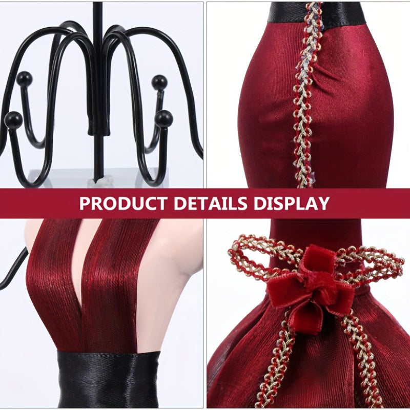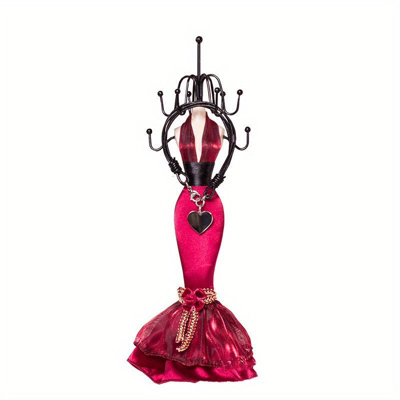 This elegant jewelry display stand is perfect for showcasing earrings, necklaces, rings, and more. It features a mannequin stand design in a claret color, adding a touch of style to any room.