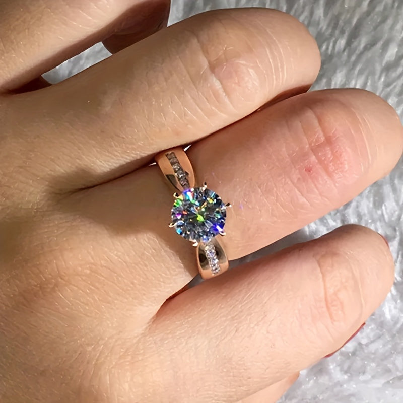 This timeless engagement ring features a classic 6-prong setting adorned with a sparkling synthetic zirconia stone. It makes a perfect gift for your special someone.
