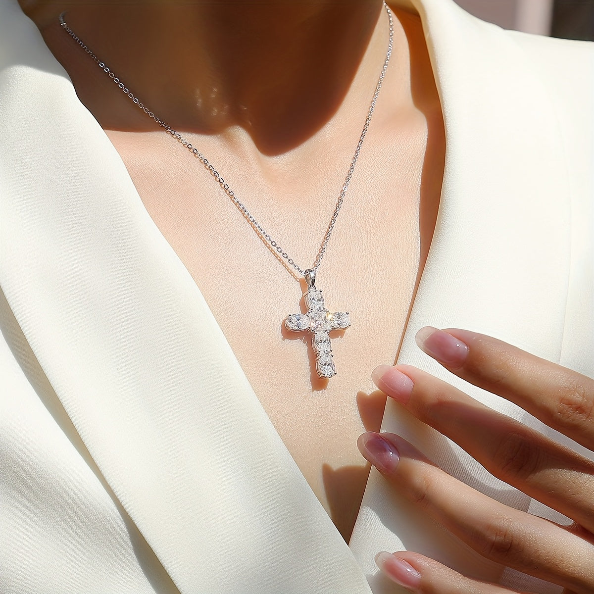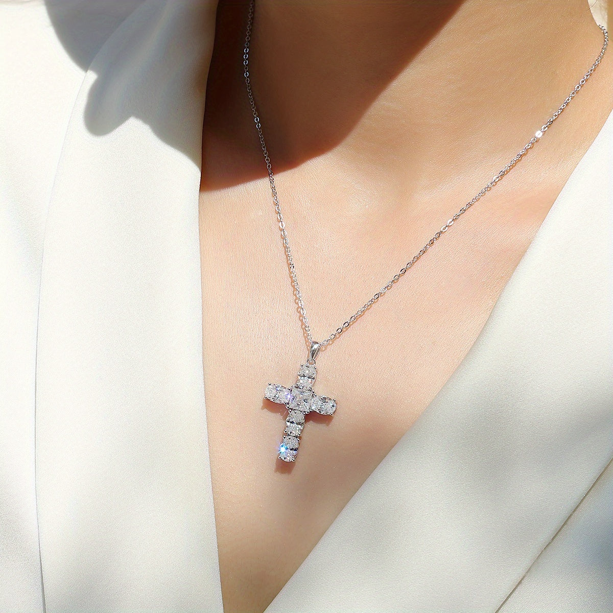 Elegant cross pendant necklace perfect for Good Friday, Mother's Day, anniversaries, and special occasions. Crafted with shimmering moissanite stones.