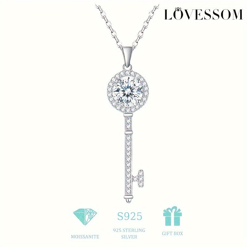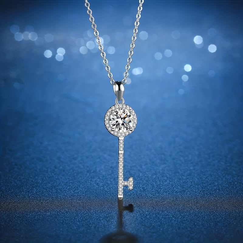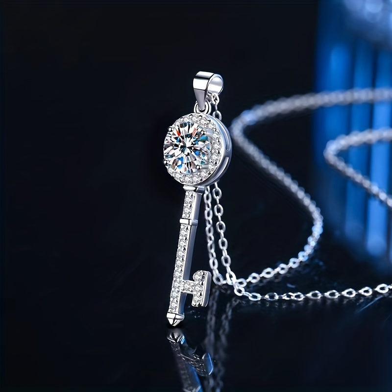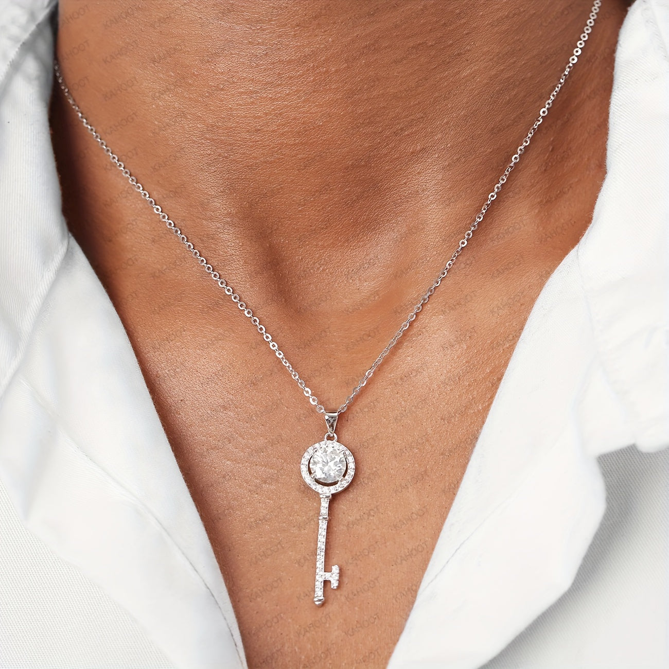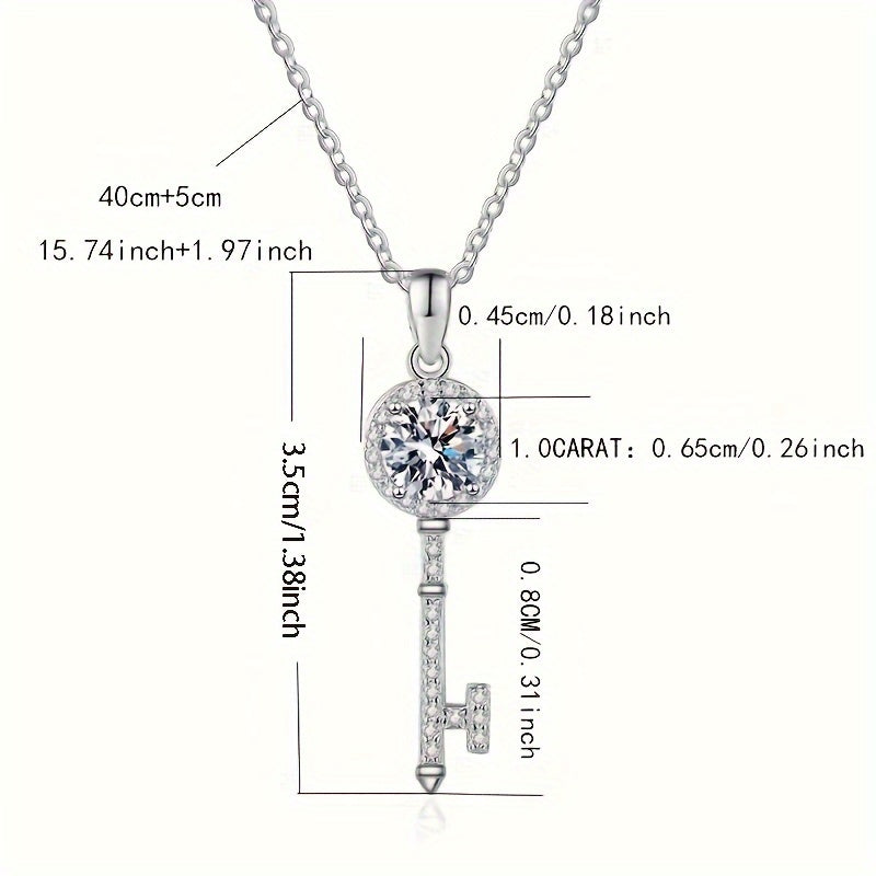 This elegant key pendant necklace is made of S925 silver and features a beautiful Moissanite gemstone. Perfect for women, girls, and as a special gift for Mother's Day or anniversaries.