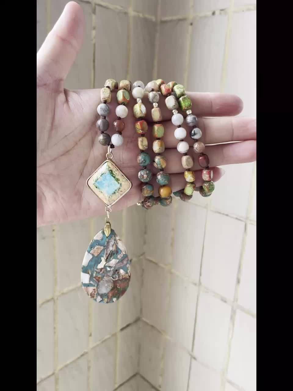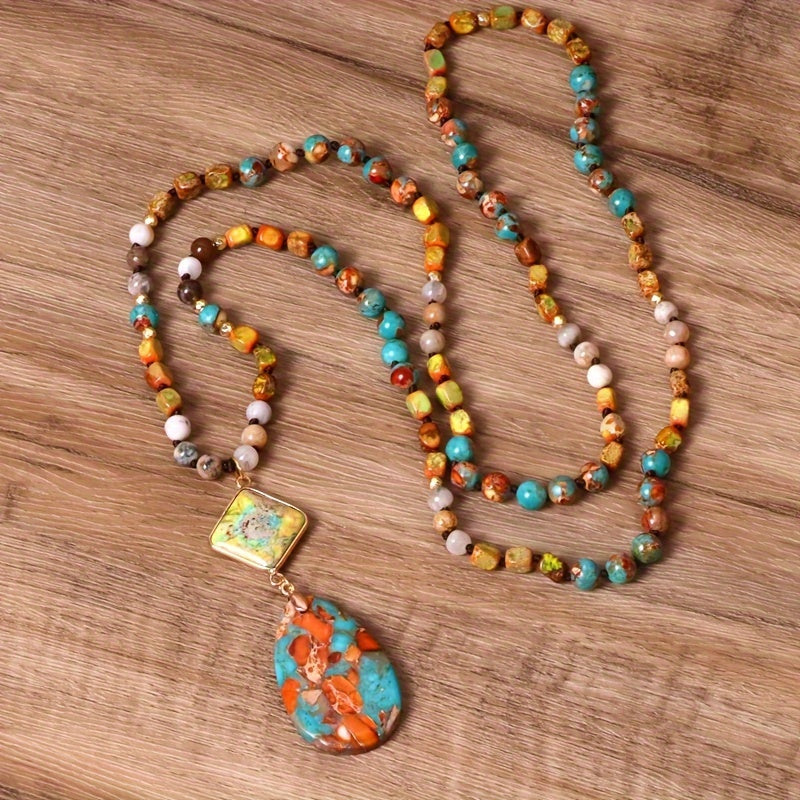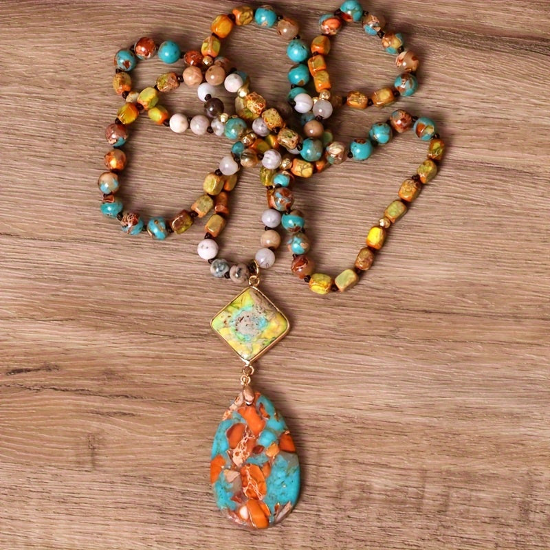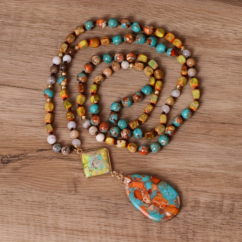 Elegant natural stone beaded necklace featuring a semi-precious pendant. Perfect for meditation, yoga, or as an anniversary jewelry gift.