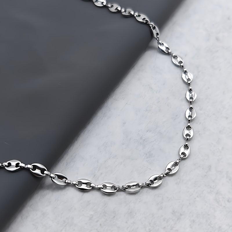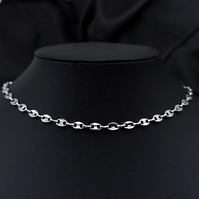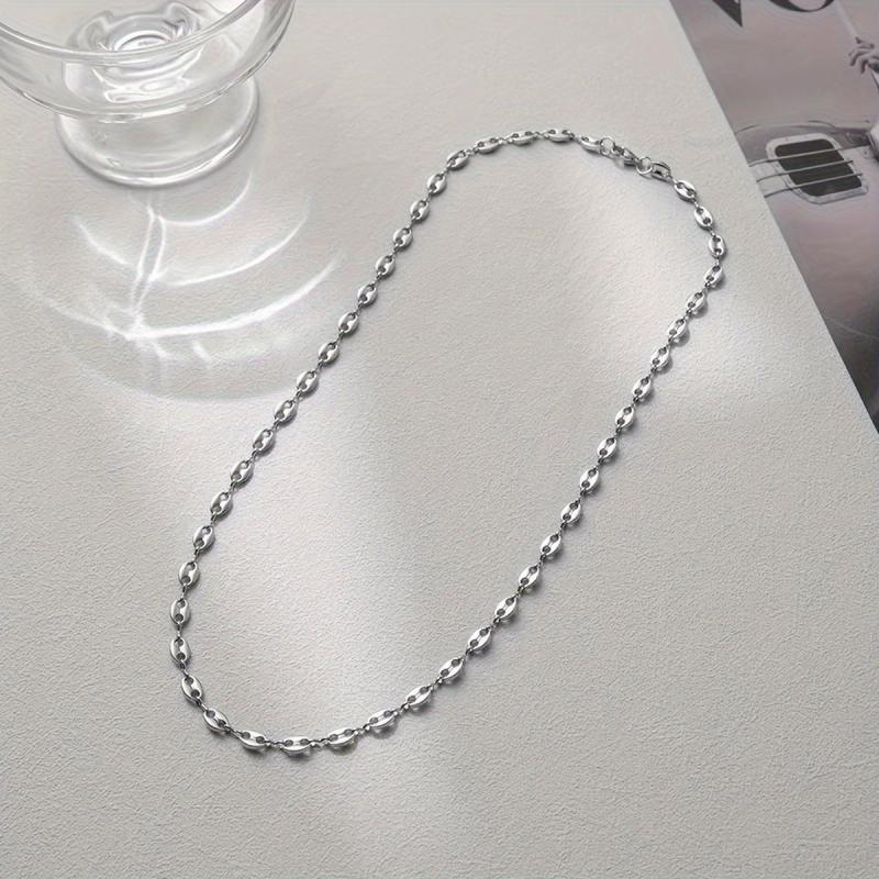 Add a touch of elegance to your outfit with this stainless steel coffee bean chain necklace. Features a pig nose oval design, perfect for European and American chain jewelry.