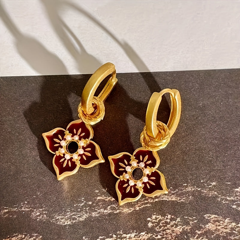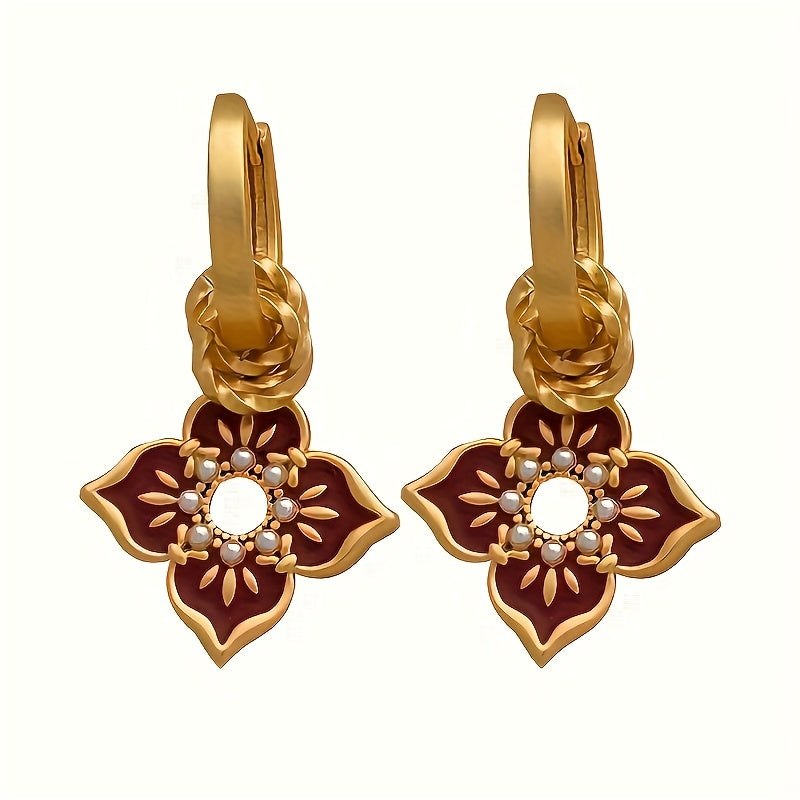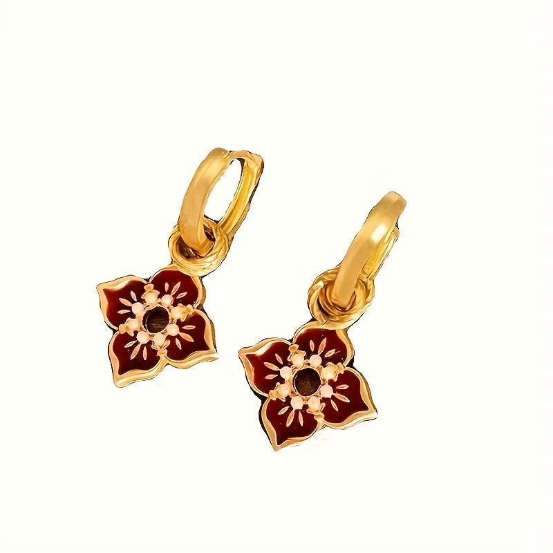Add a pop of retro style with these versatile and fashionable enamel niche earrings. The vibrant colors and unique design make them a standout accessory.