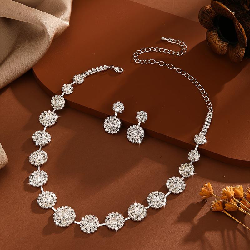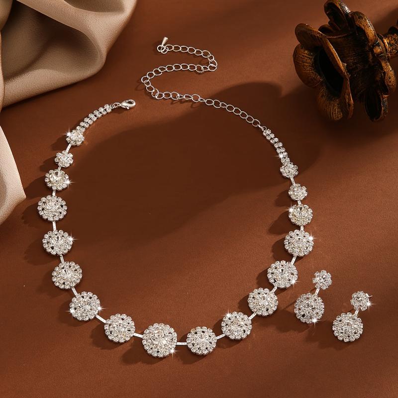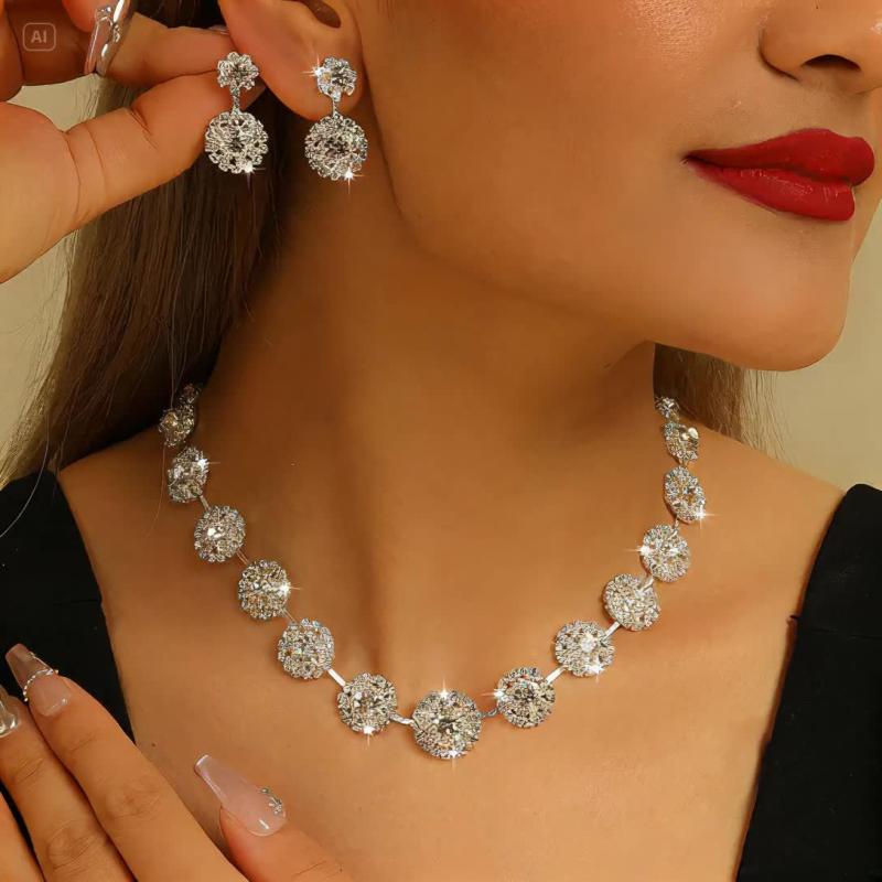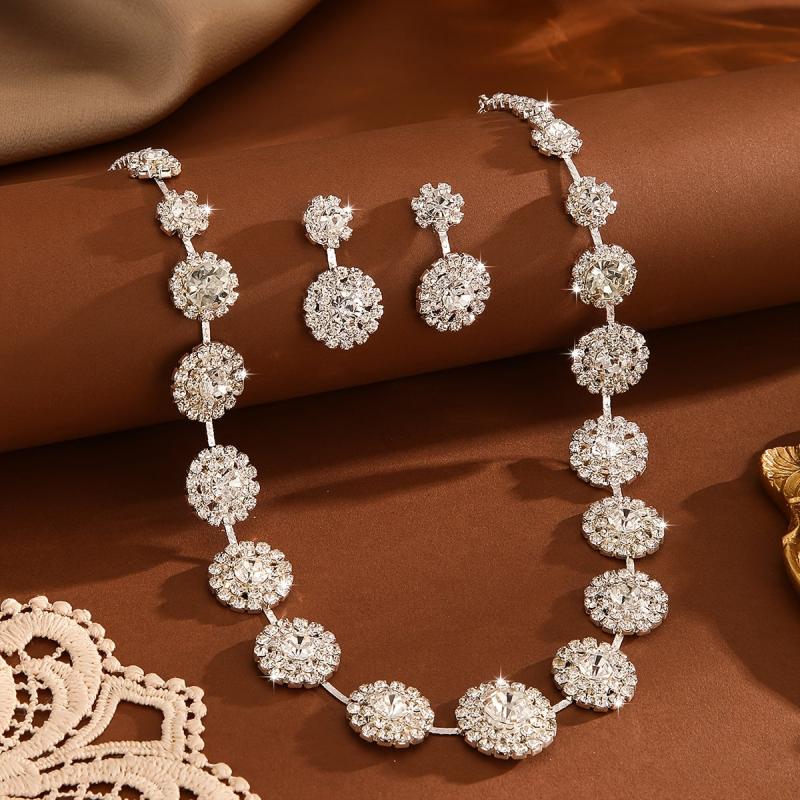 Elegant jewelry set featuring copper and rhinestones, perfect for weddings, parties, or daily wear.