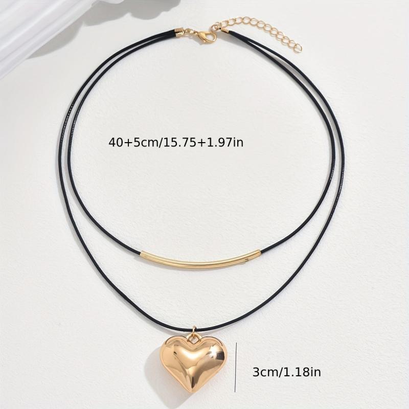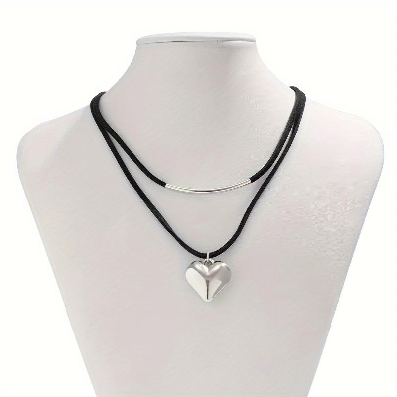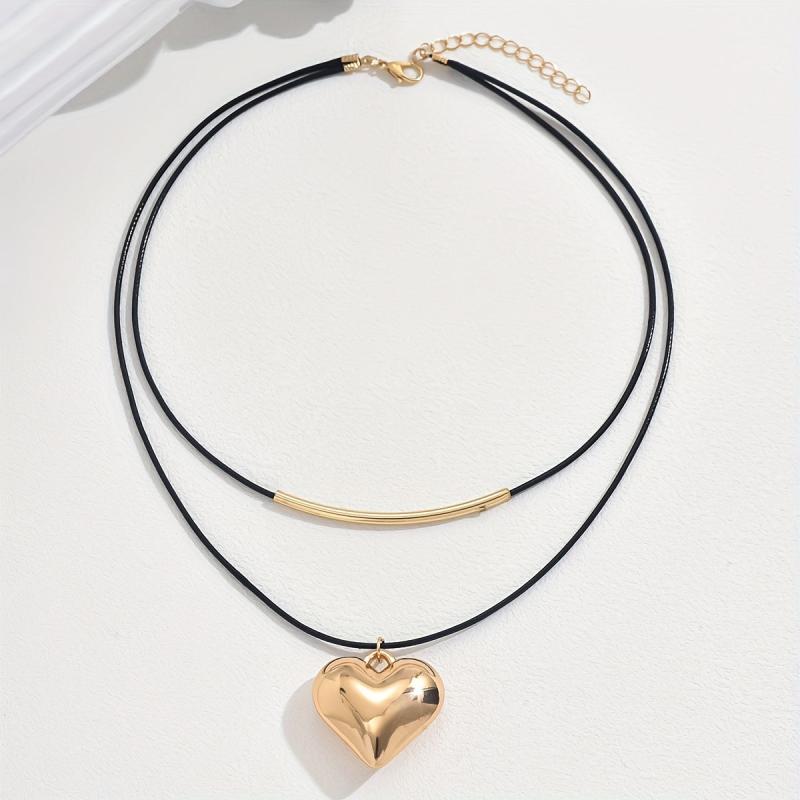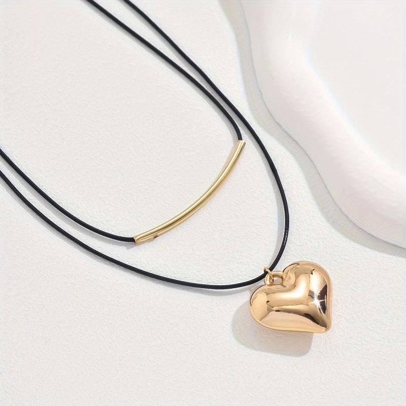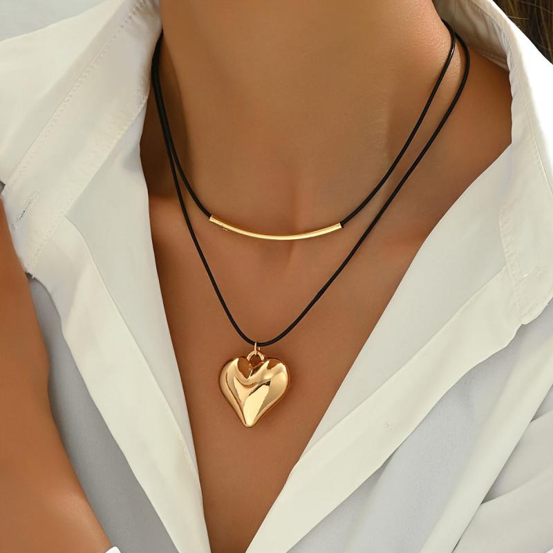 Elegant and versatile cord necklace featuring a geometric heart and curved tube pendants. Perfect for daily wear.
