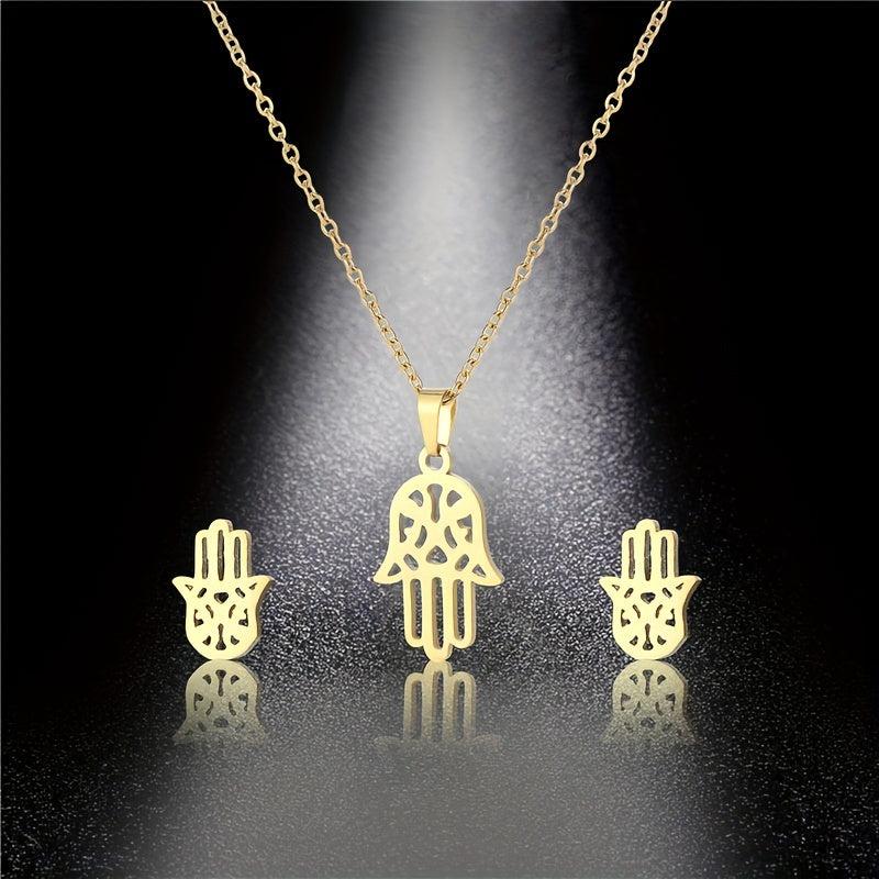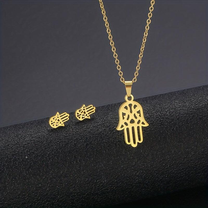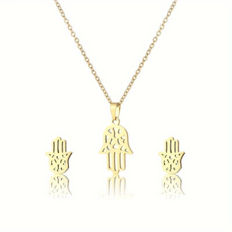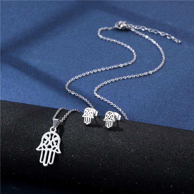 Beautiful European and American couple necklace set featuring stainless steel hollow palm design. Perfect accessory for partners to wear together.
