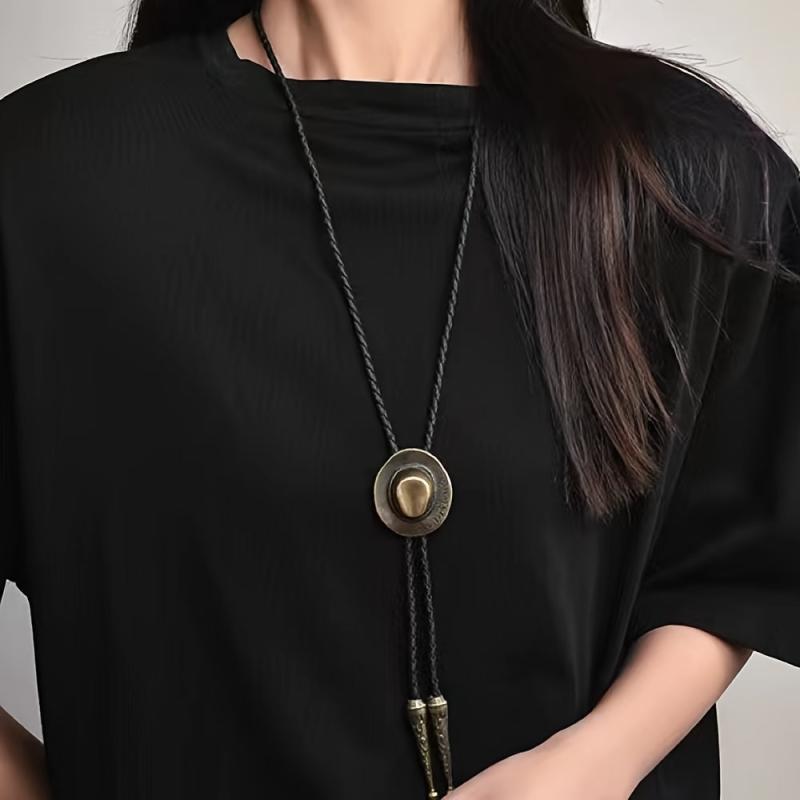 Complete your Western-inspired look with this stylish cowboy bowtie long hat accessory necklace. Perfect for adding a festive touch to your outfit during the holiday season.