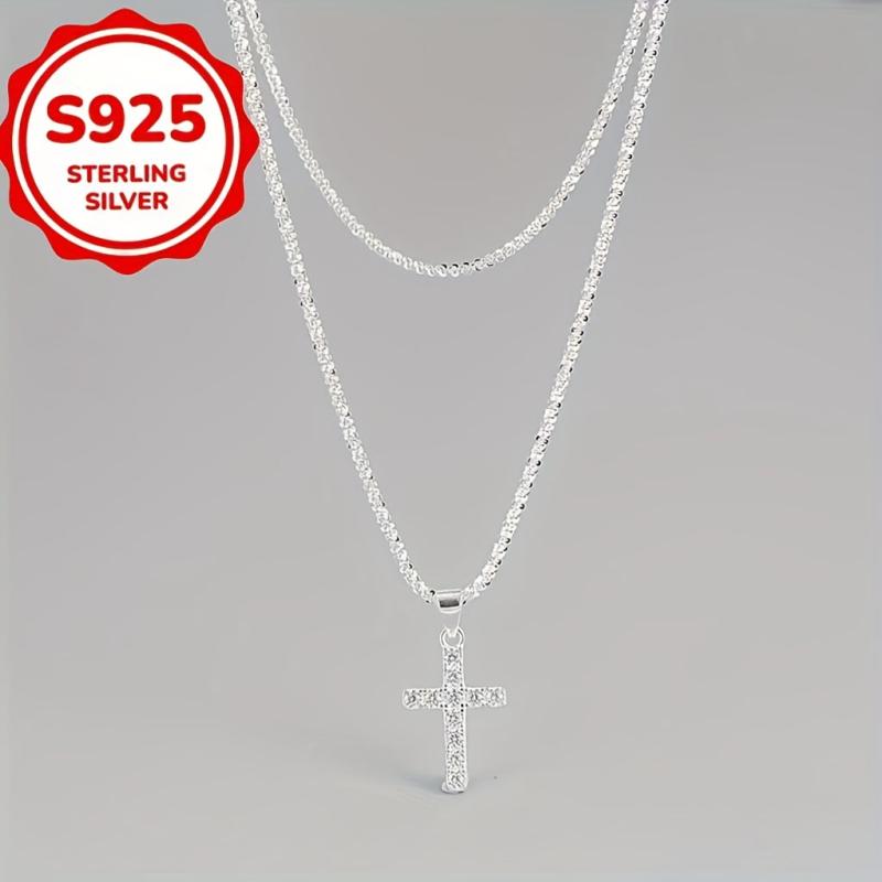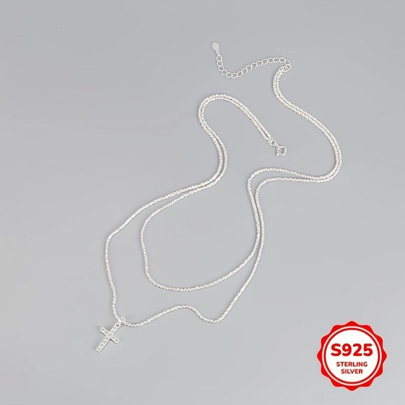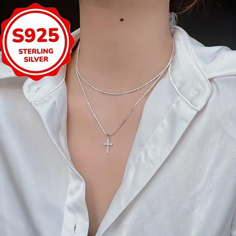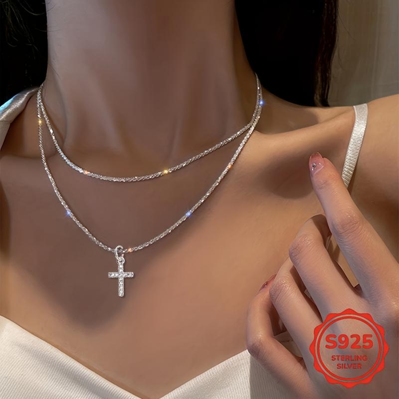 This stylish double layer women's necklace features a cross pendant on a collar chain, offering multiple wear styles for versatile looks.