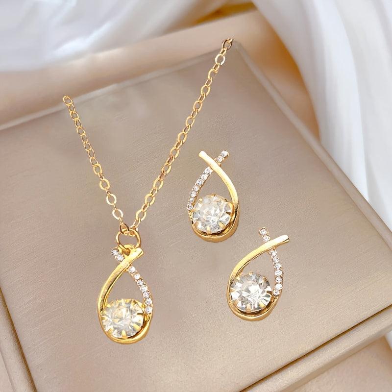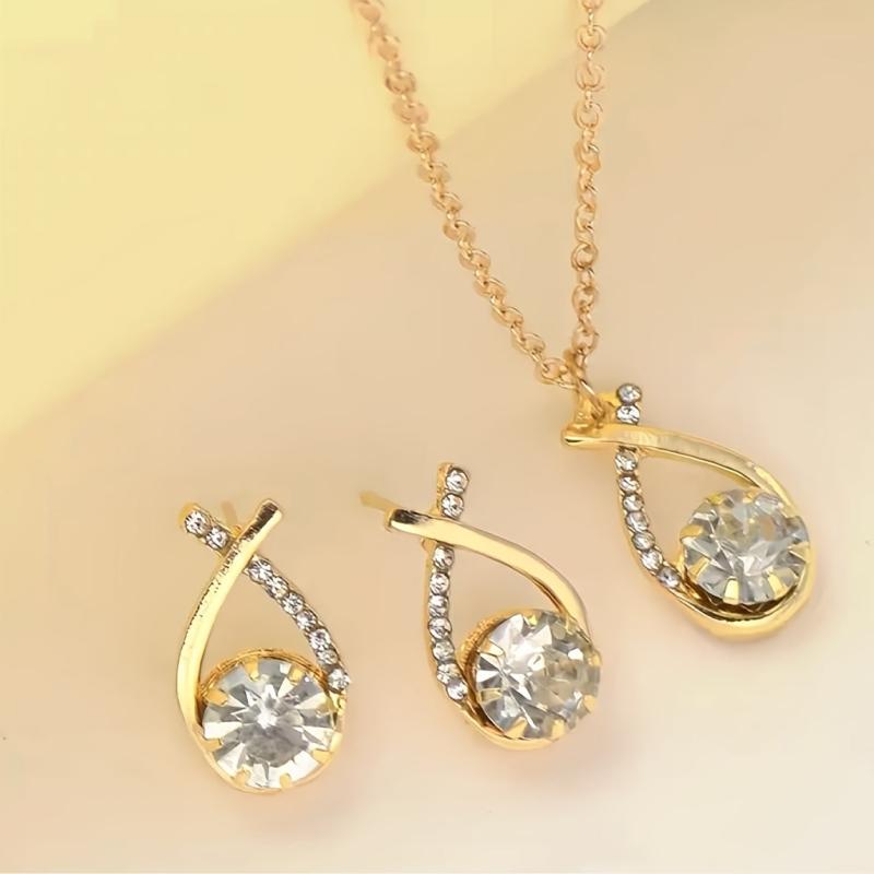 Elegant set of jewelry featuring a cross design with shimmering teardrop charms, suitable for daily wear.