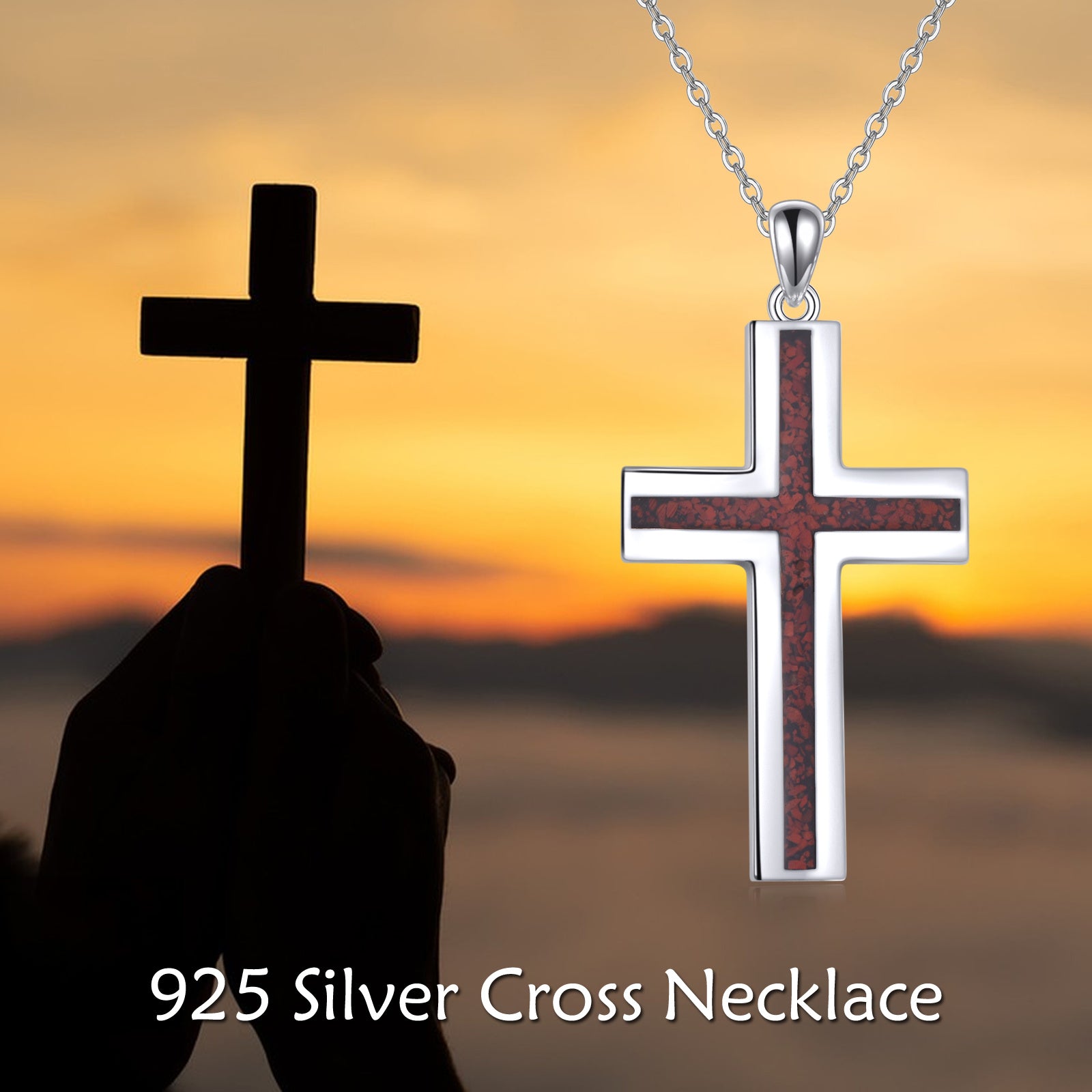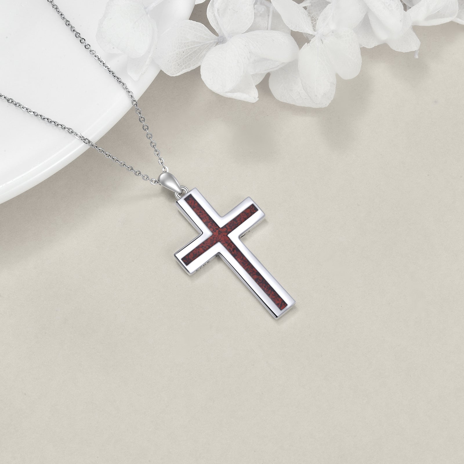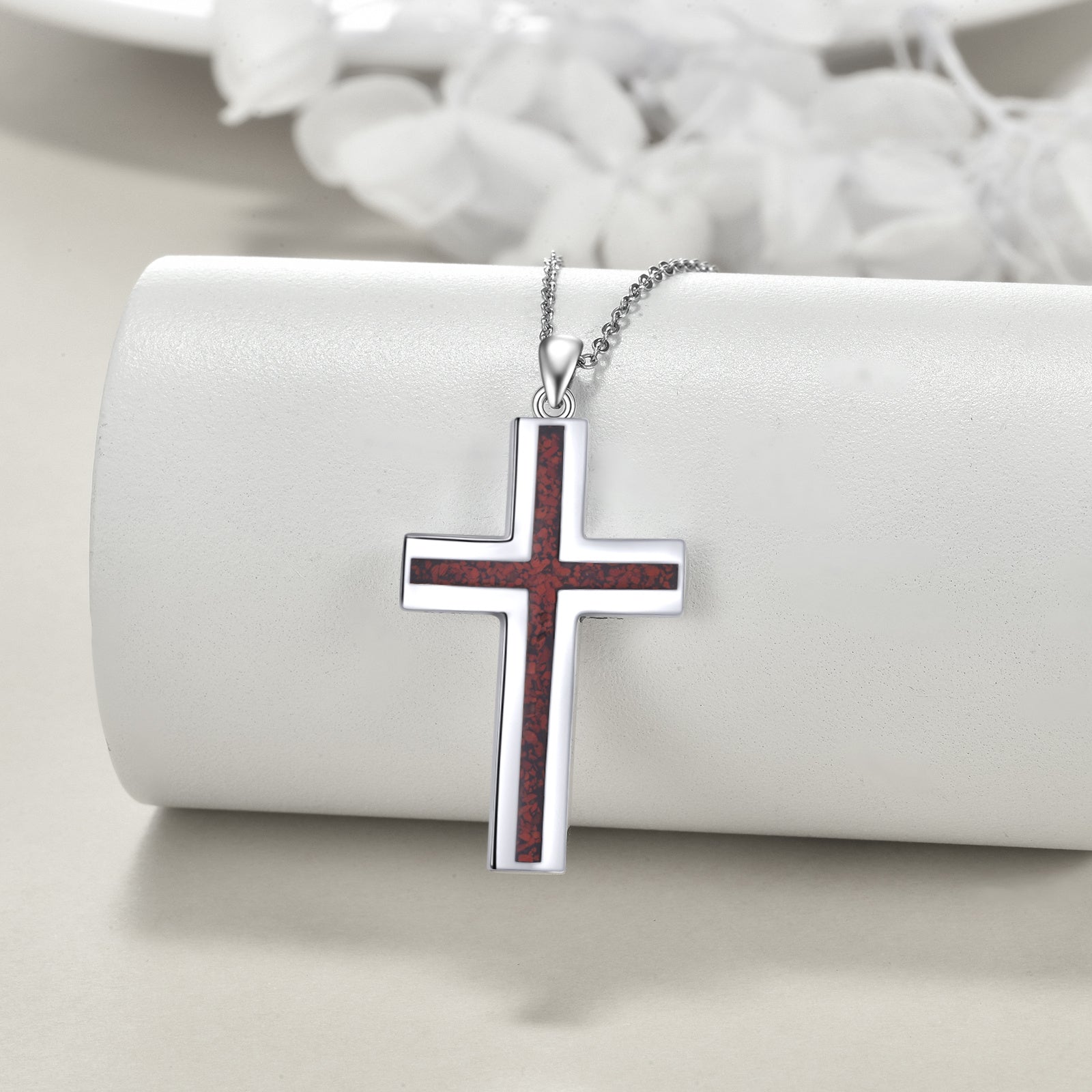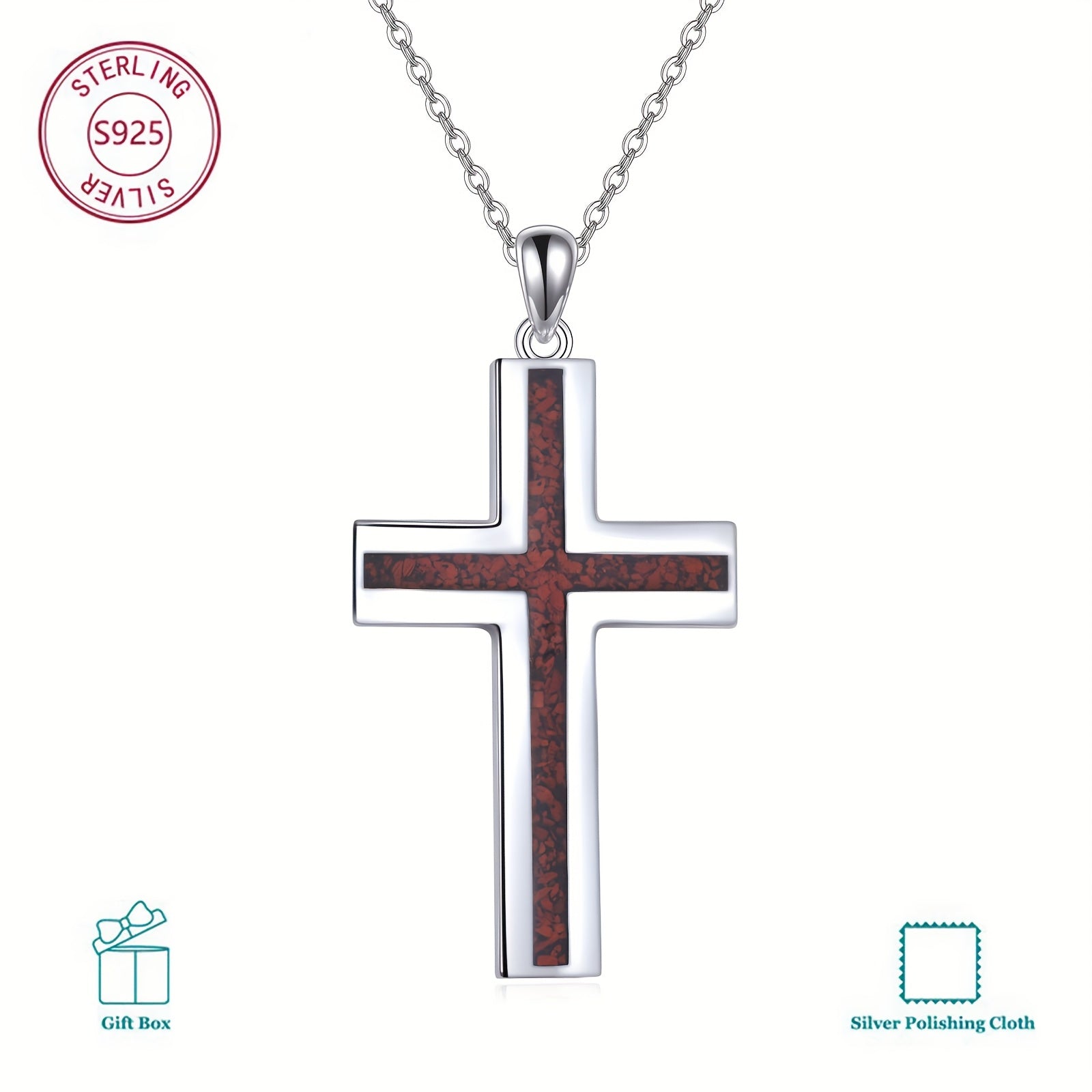 This sterling silver cross necklace features a vibrant red coral cross pendant. Perfect for both women and men.