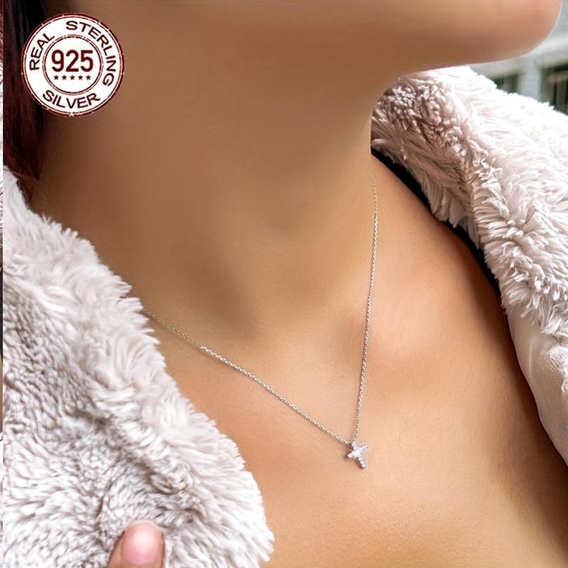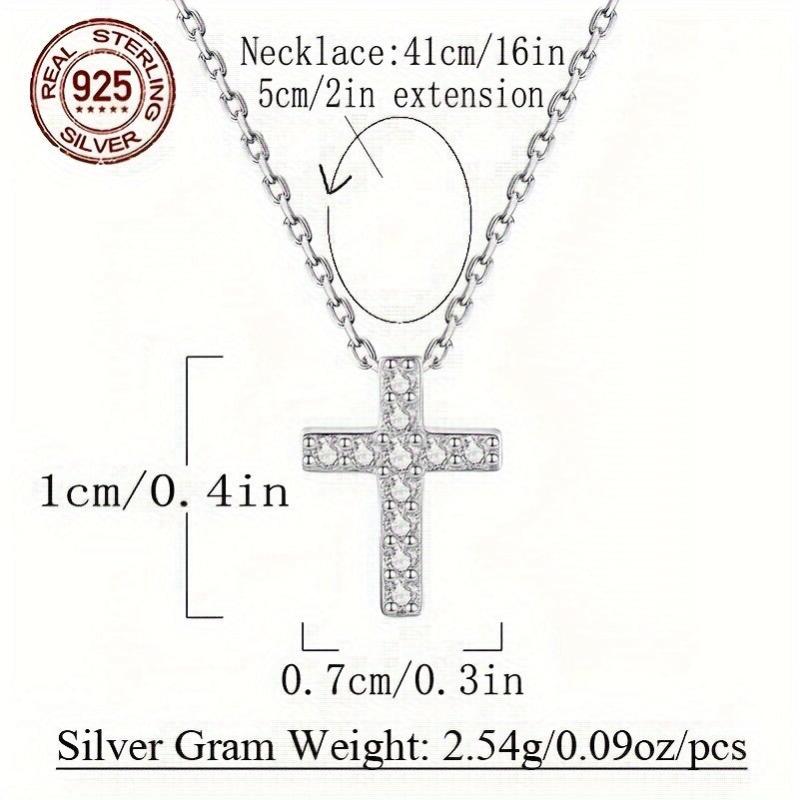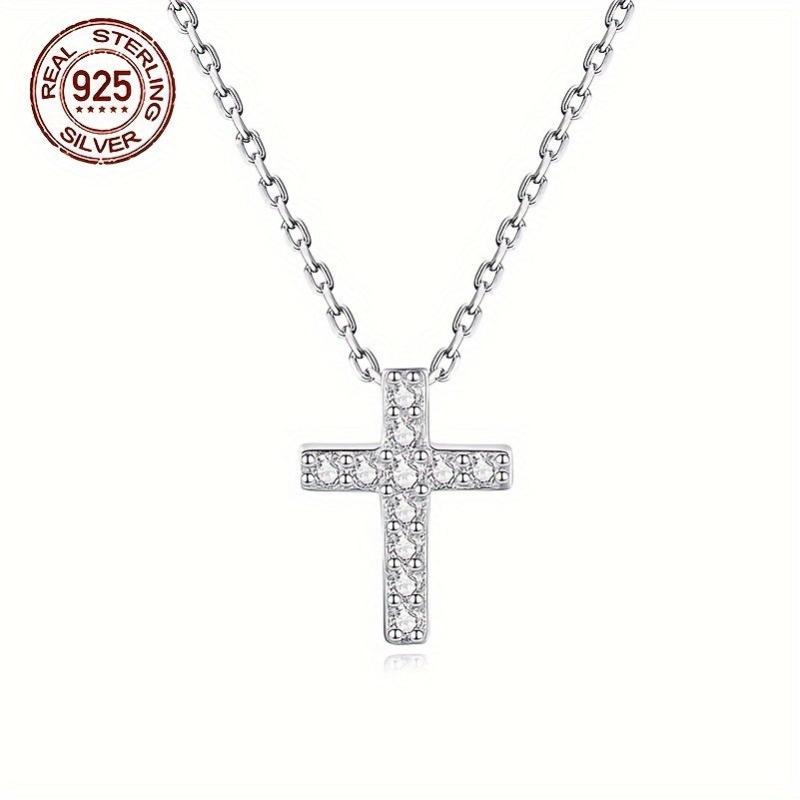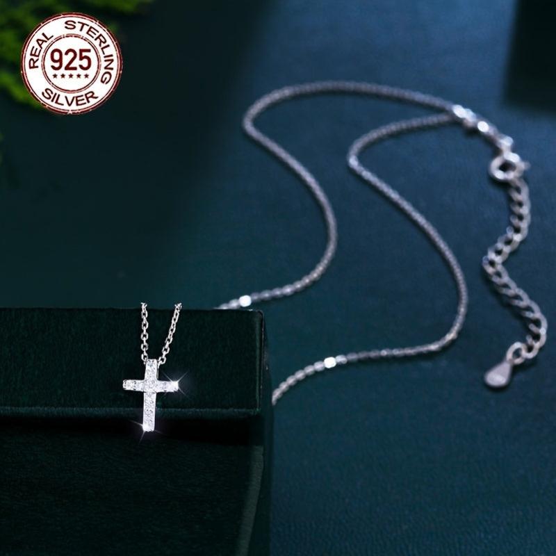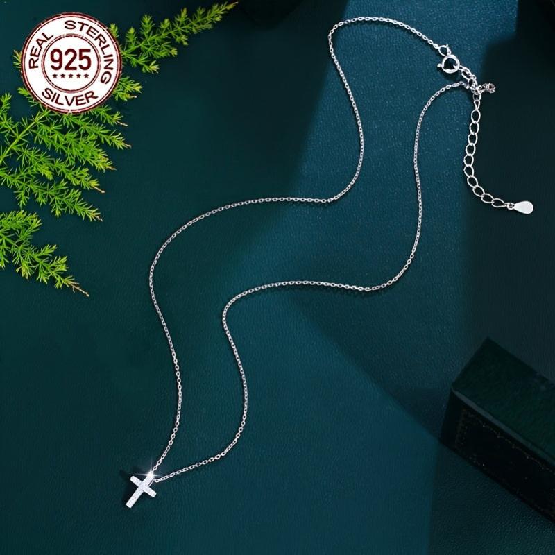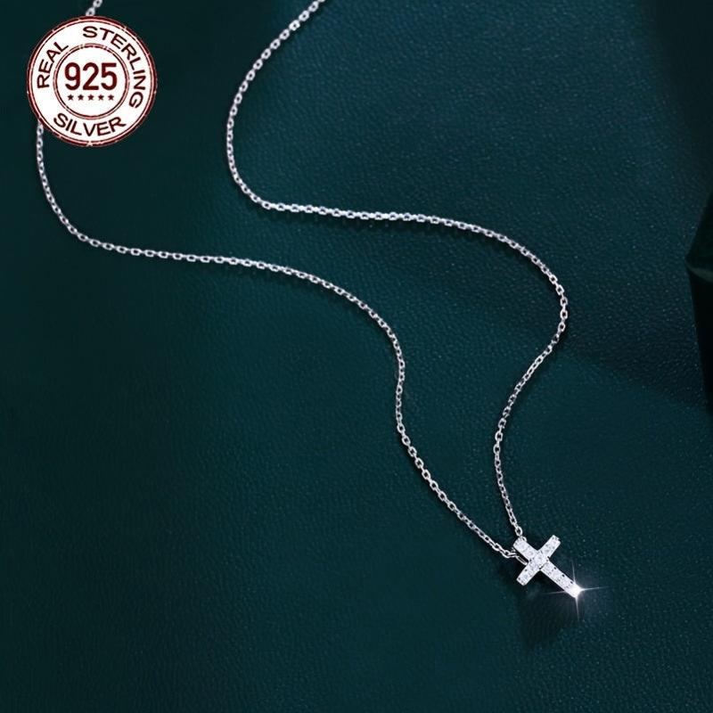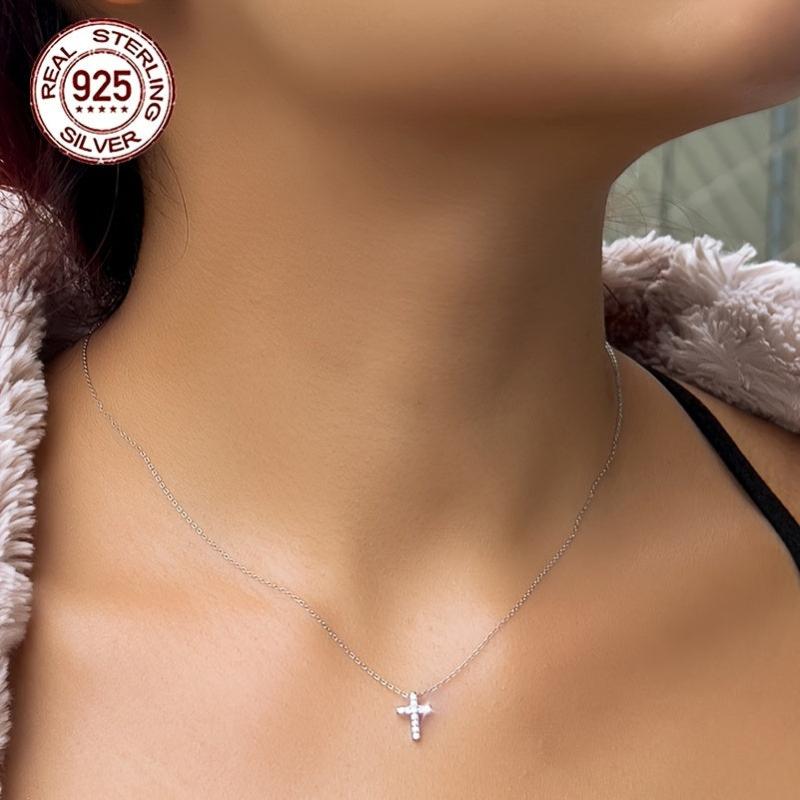 Cross Pendant Collarbone Necklace 925 Sterling Silver Cubic Zirconia Inlay