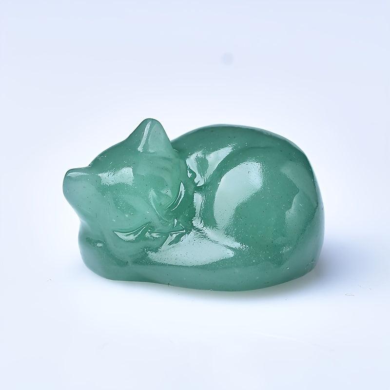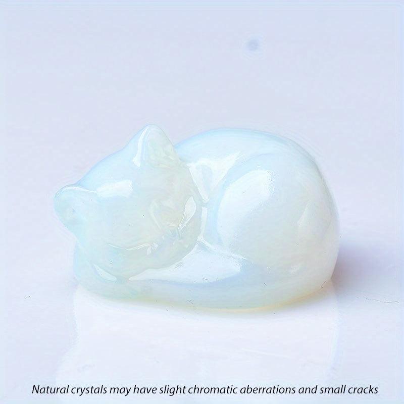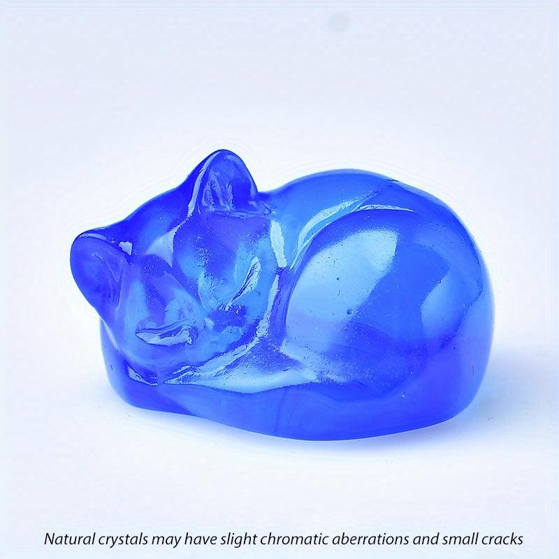 This crystal carving features a sleeping cat design, perfect for home decor and as a mineral specimen. It's a lovely healing stone.