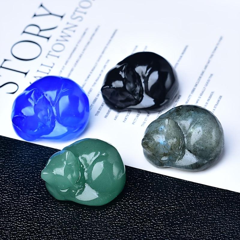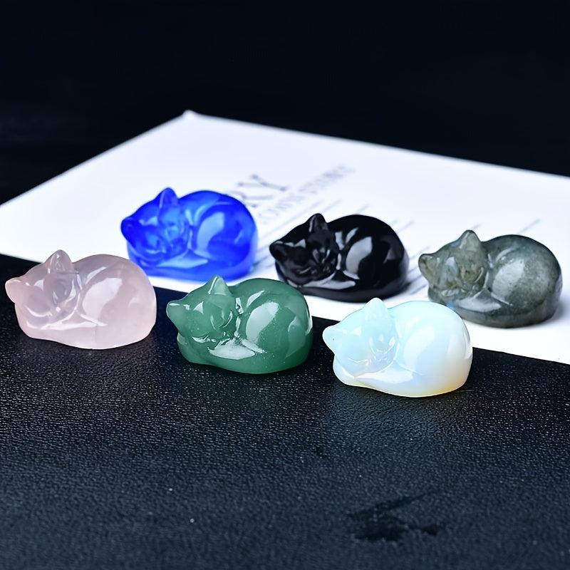 Crystal Carving Sleeping Cat Gift Home Decor Mineral Specimen