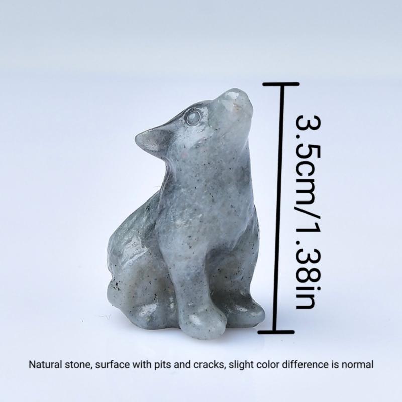 This beautiful crystal carving wolf healing stone is a perfect addition to your home decor. It measures 3.1 inches in length and 3.8 inches in width, making it a striking piece.