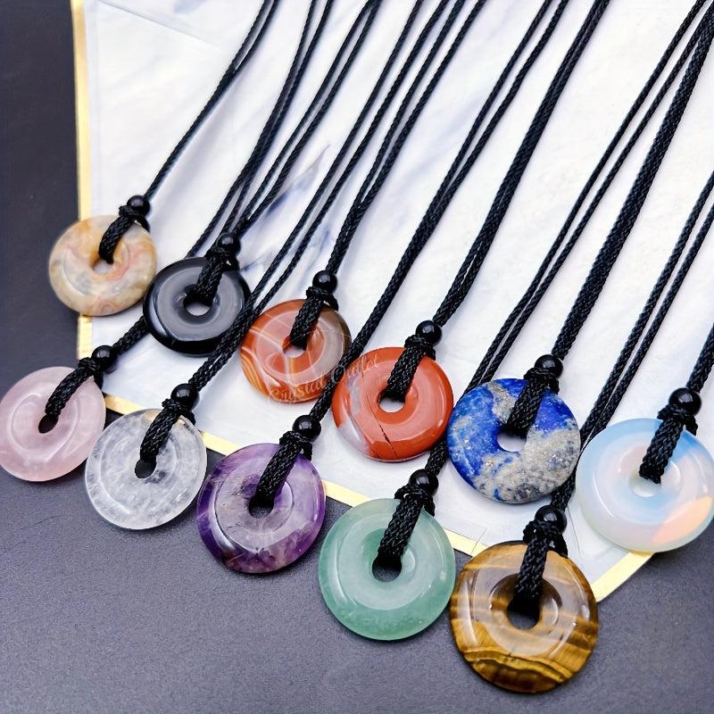 Add a touch of elegance with this crystal circle donut necklace. Perfect for everyday wear or special occasions.