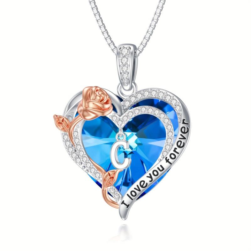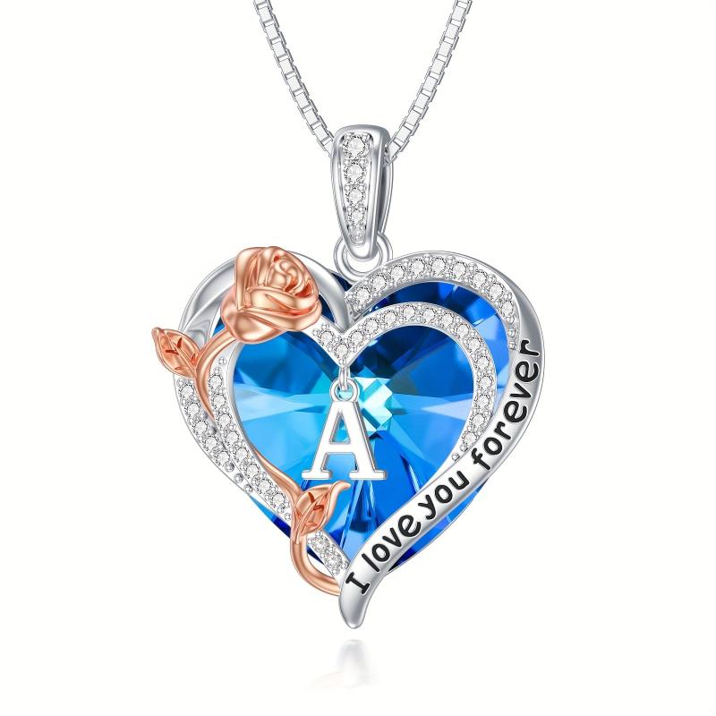 Give a personalized touch with this beautiful initial necklace. Made of 925 sterling silver, the heart-shaped pendant is adorned with artificial crystals. Perfect gift for moms, daughters, and wives.