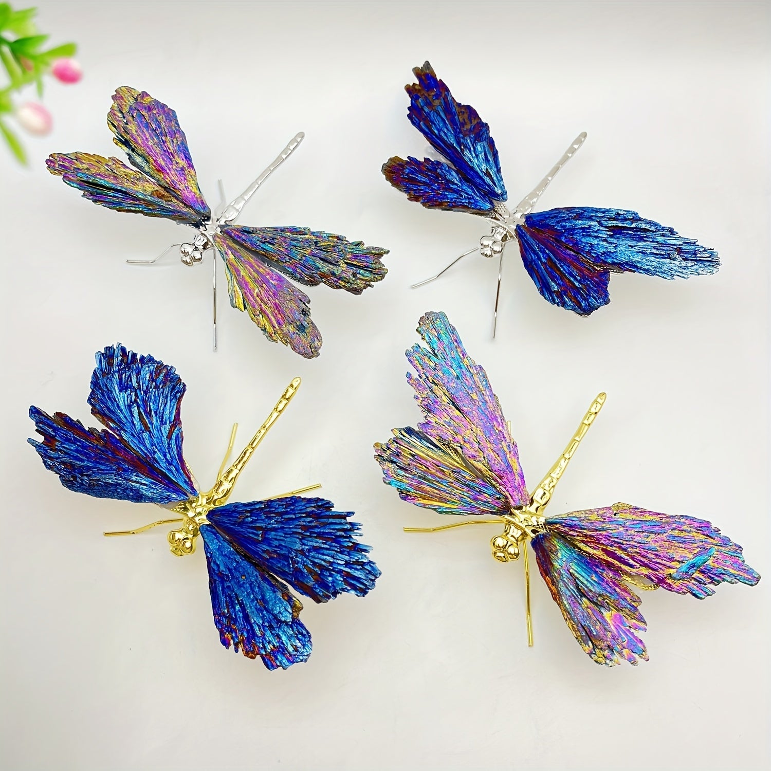 Add a touch of nature-inspired elegance to your space with this stunning crystal tourmaline dragonfly ornament. It is skillfully crafted from natural crystal tourmaline and electroplated to create a beautiful piece of art.