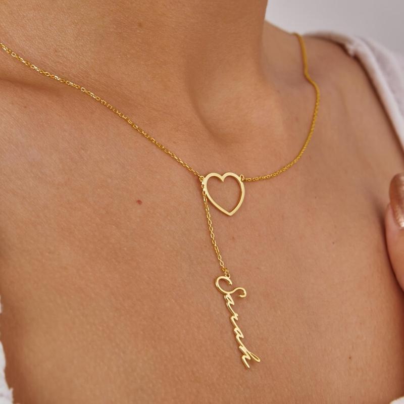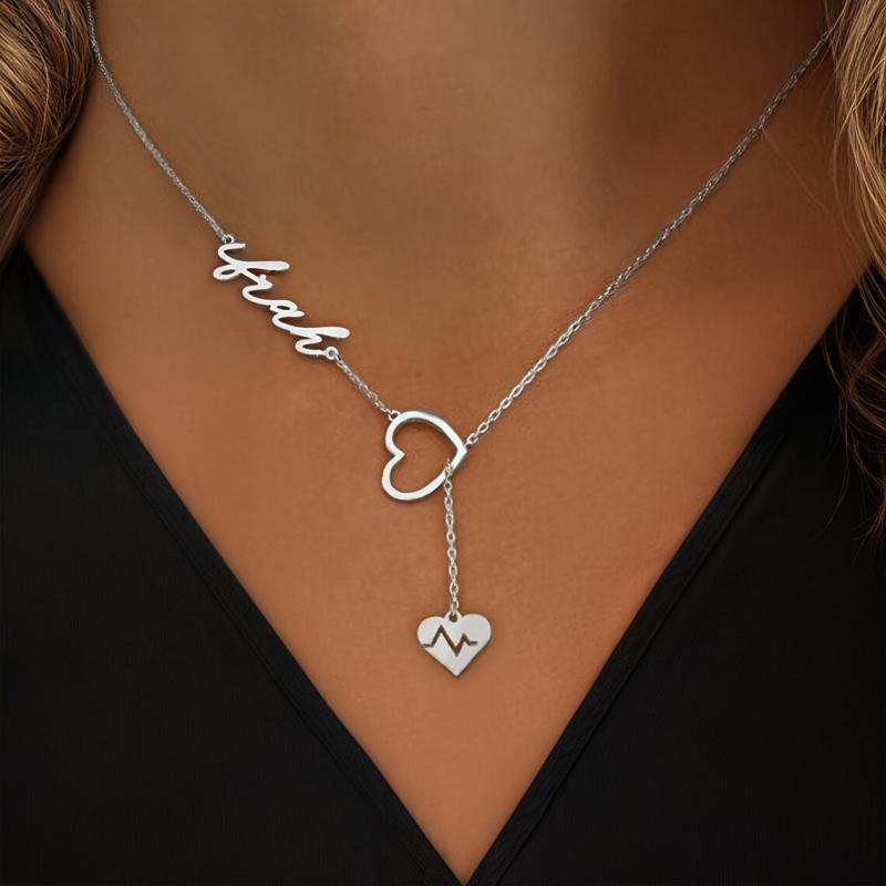 Express your love with this personalized heartbeat name necklace featuring a Y shaped chain. A perfect gift for couples to show their special bond.