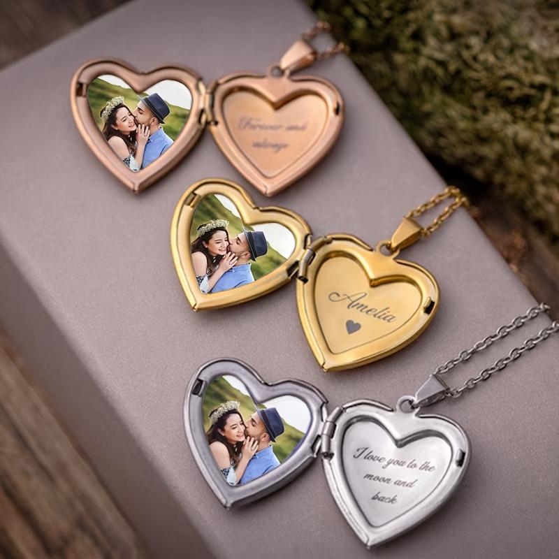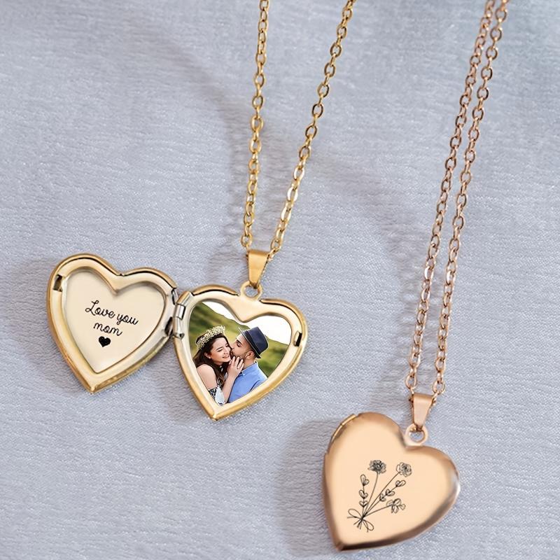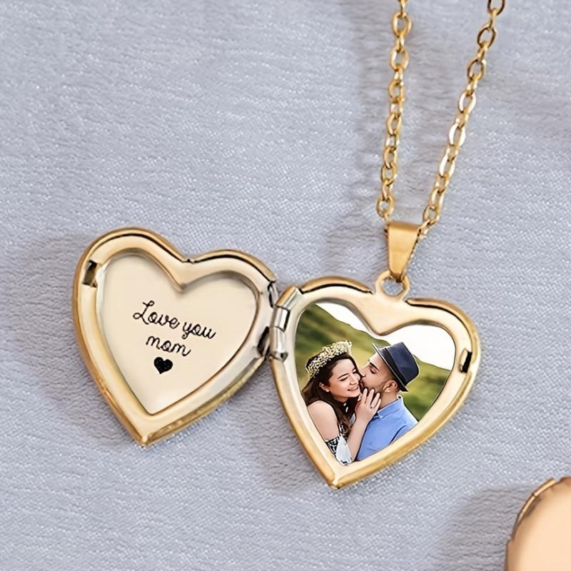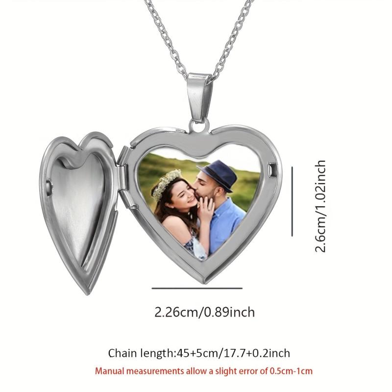 Show your love with this custom heart photo pendant necklace, perfect for mothers, wives, or girlfriends. Upload your favorite image to create a unique and meaningful piece of jewelry.