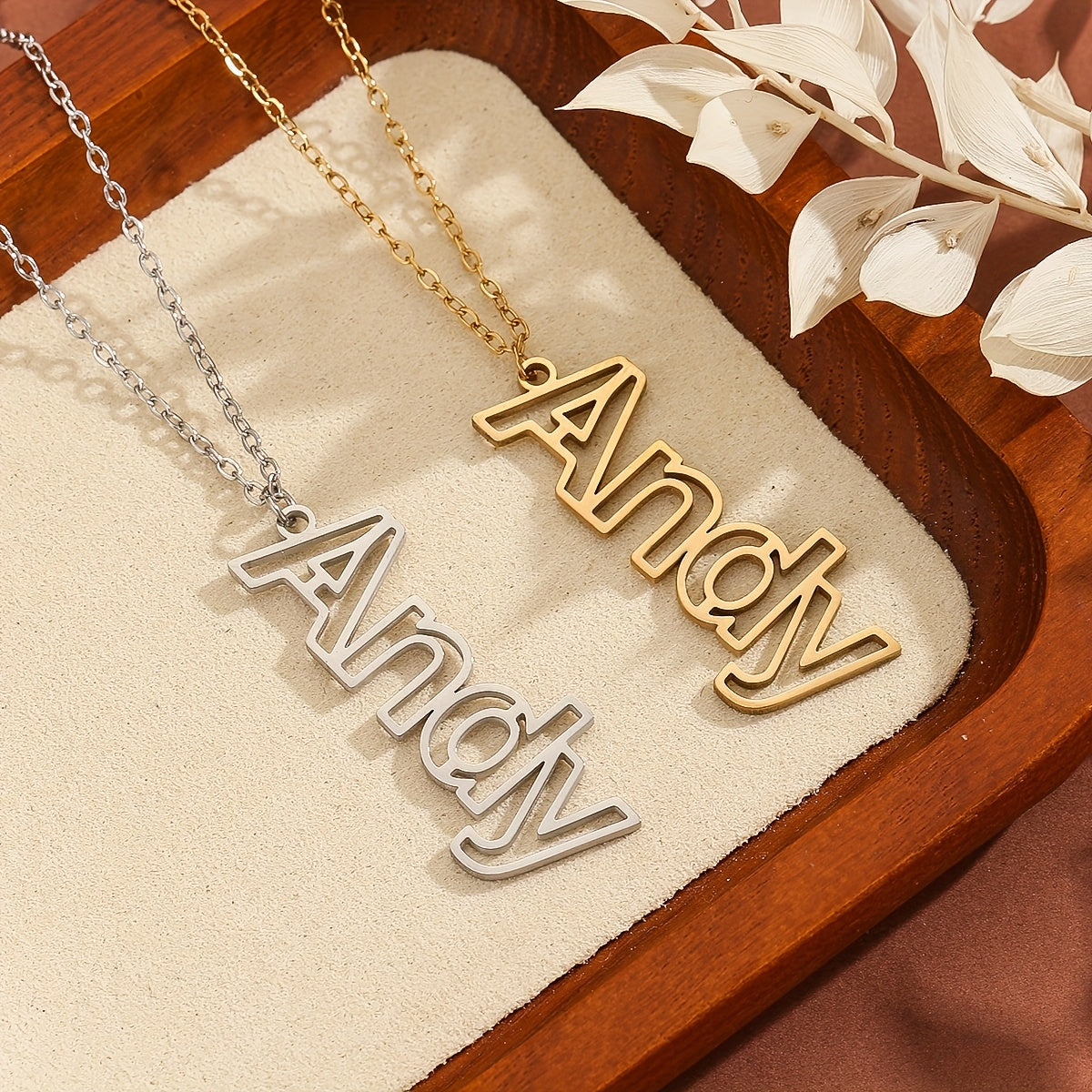 Get your own custom name necklace that can be personalized for women or men. This stainless steel necklace makes a perfect Christmas gift.