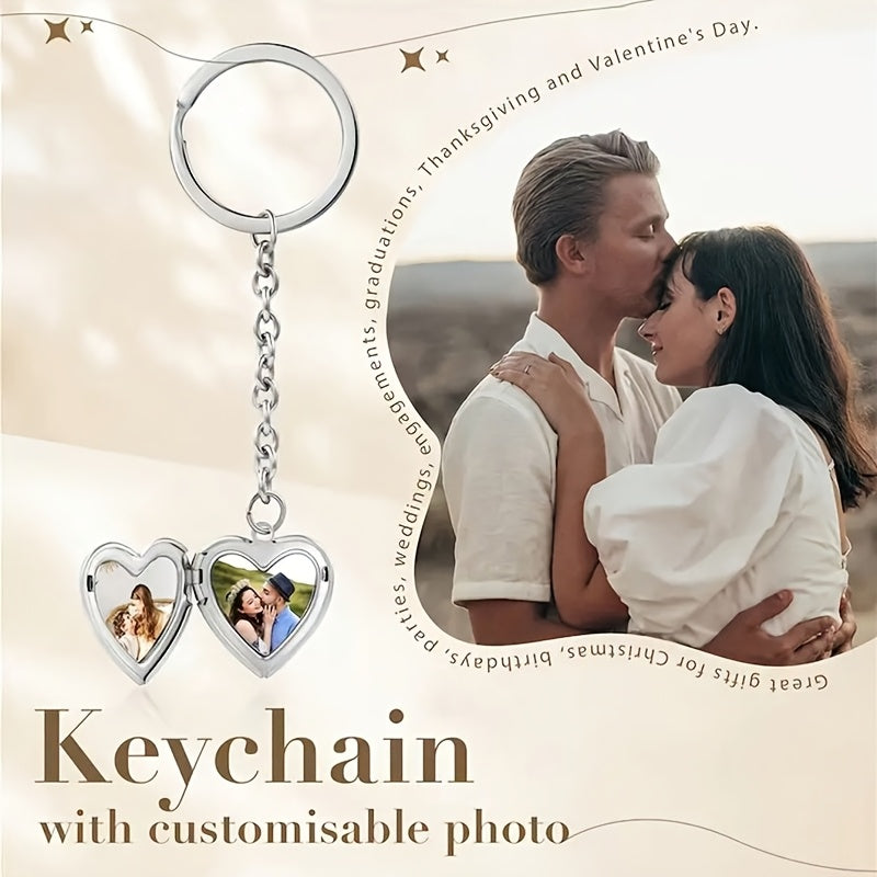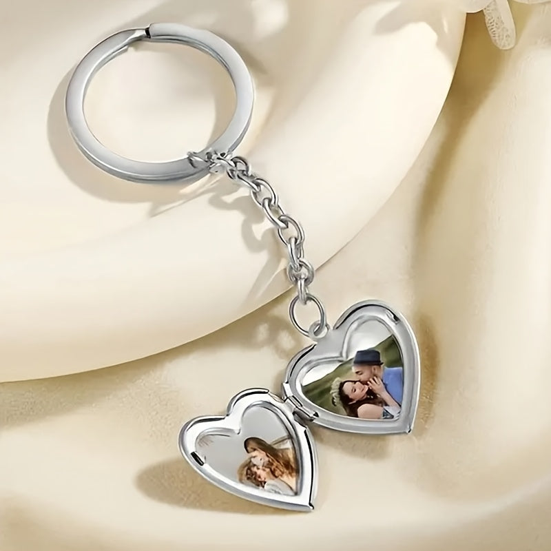 Carry your cherished memories with you always with this custom photo heart pendant keychain. Made of durable stainless steel, the love charm comes with a chain for easy attachment.