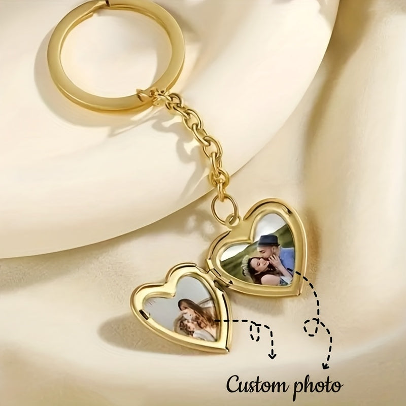 Custom Photo Heart Pendant Keychain Stainless Steel Love Charm