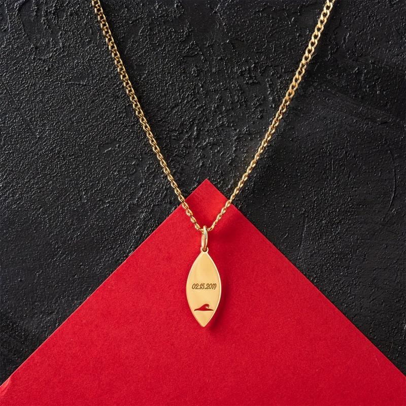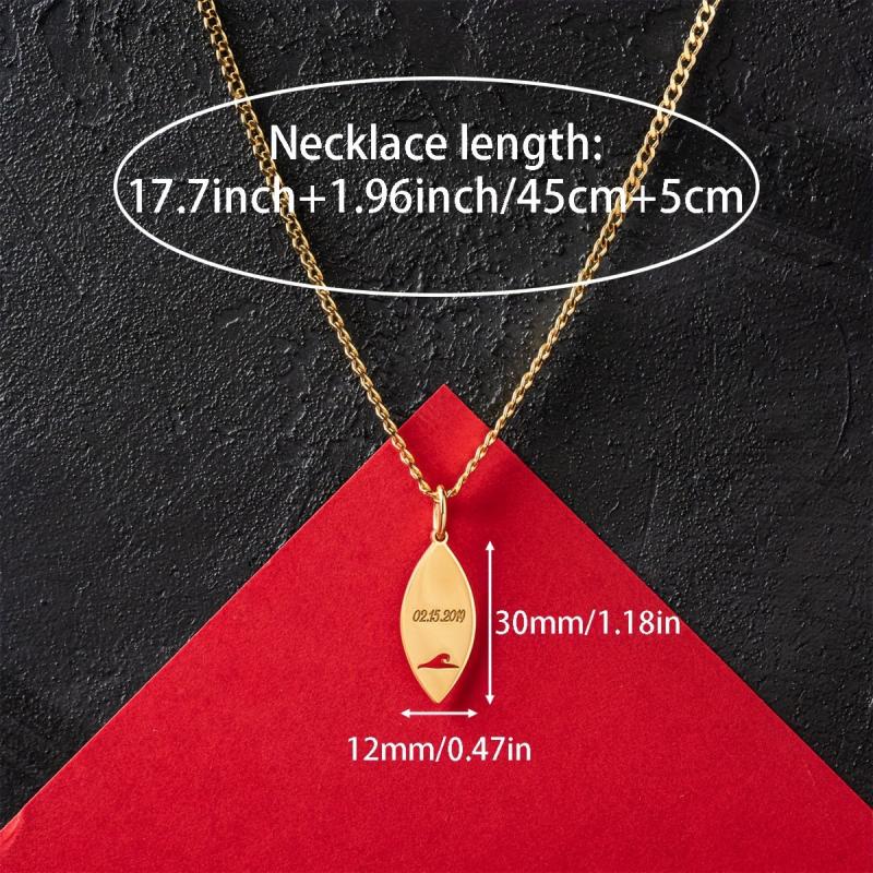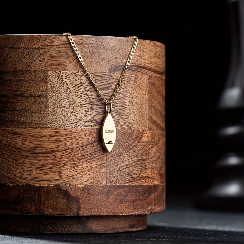 Customizable Surfboard Necklace, 18K Golden Plated Stainless Steel