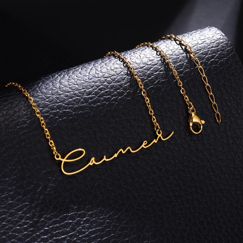Customized Signature Name Necklace Thin Chain DIY Letter Nameplate Jewelry
