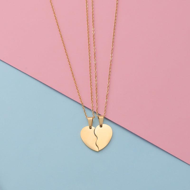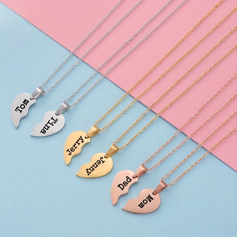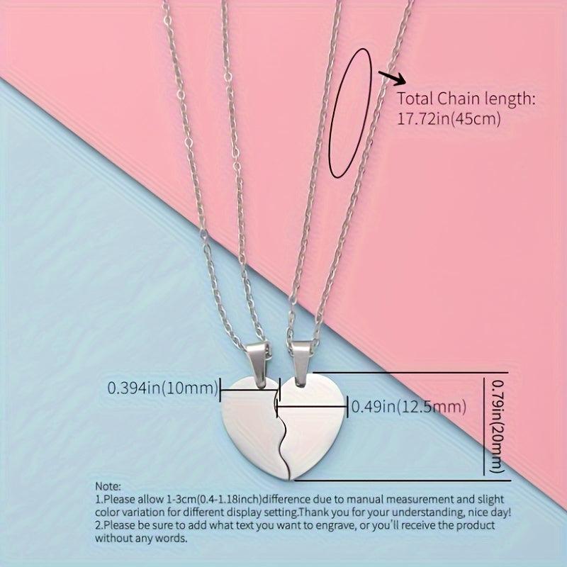 This personalized split heart shaped pendant necklace is a beautiful accessory for couples. Customized engraving makes it a special gift for holidays or special occasions.