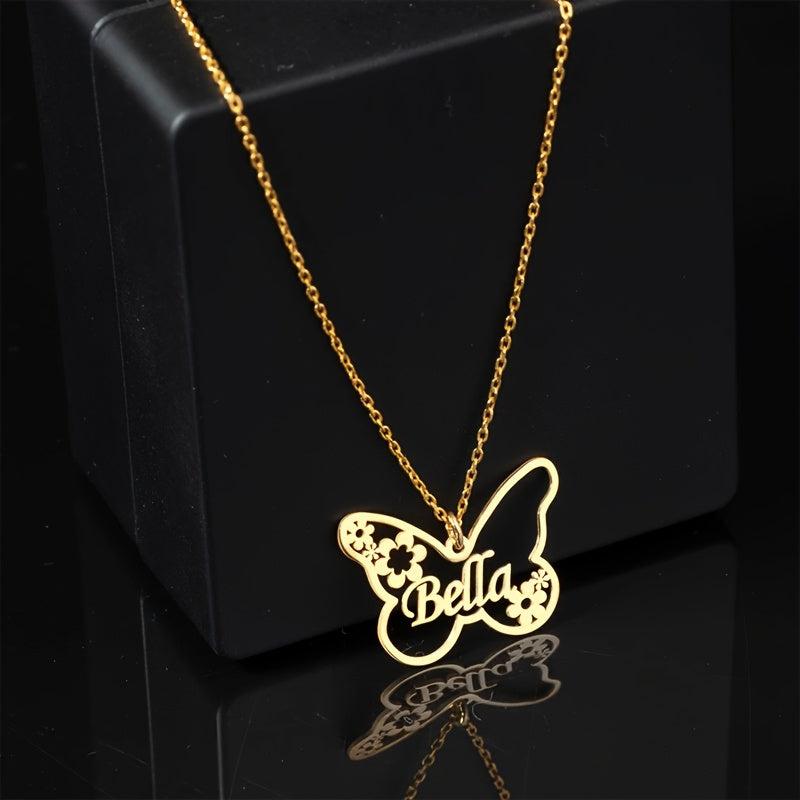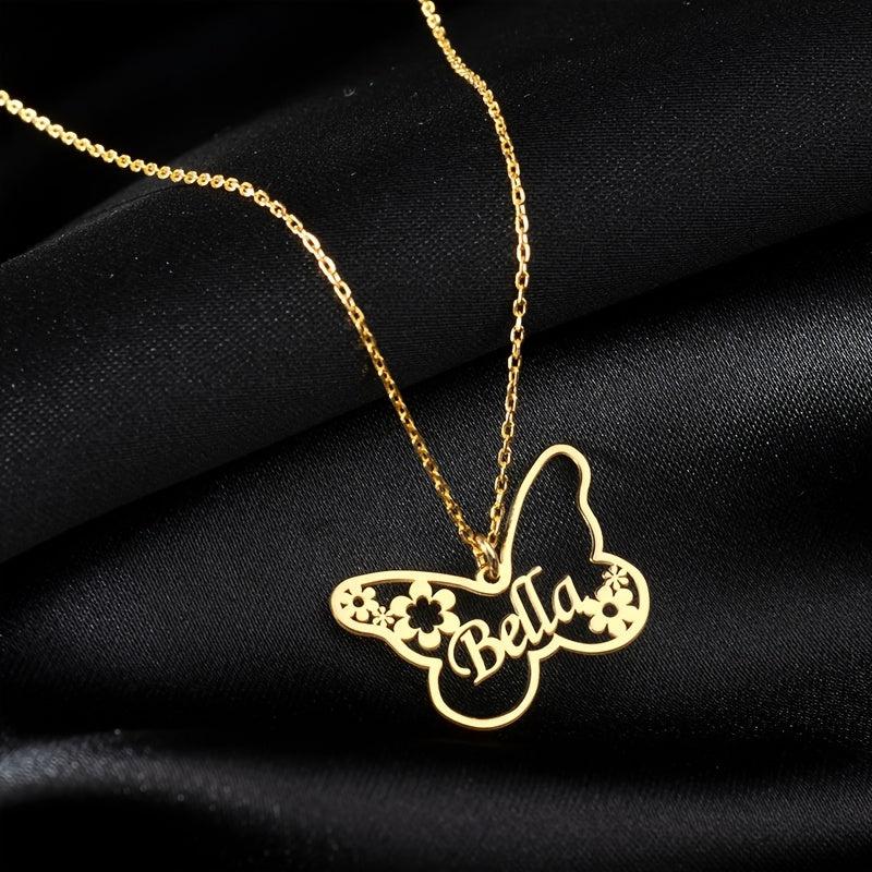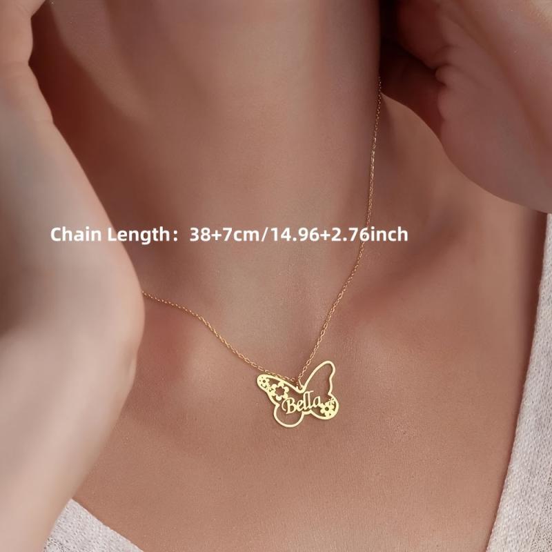 Customized Stainless Steel Butterfly Pendant Necklace with 1-2 Names