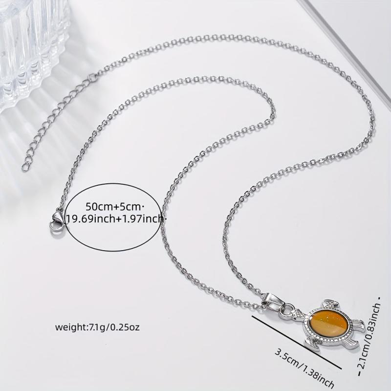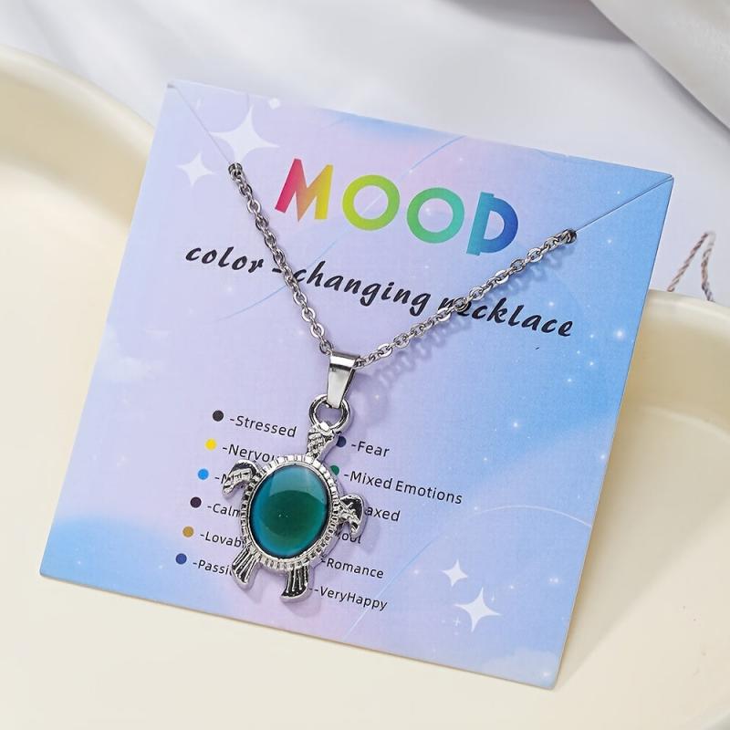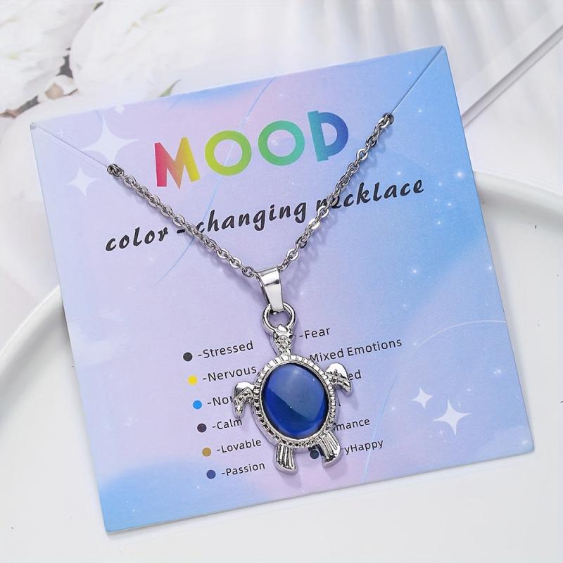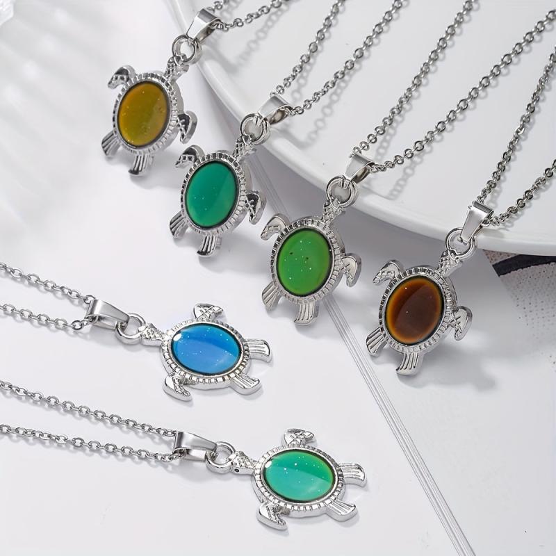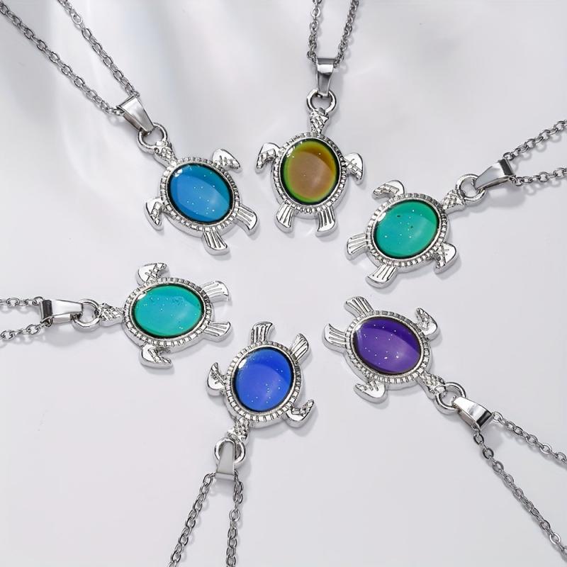 This adorable turtle necklace features a mood-changing pendant made of zinc alloy, perfect for casual wear or as a birthday gift. The stainless steel chain is adjustable for a comfortable fit.