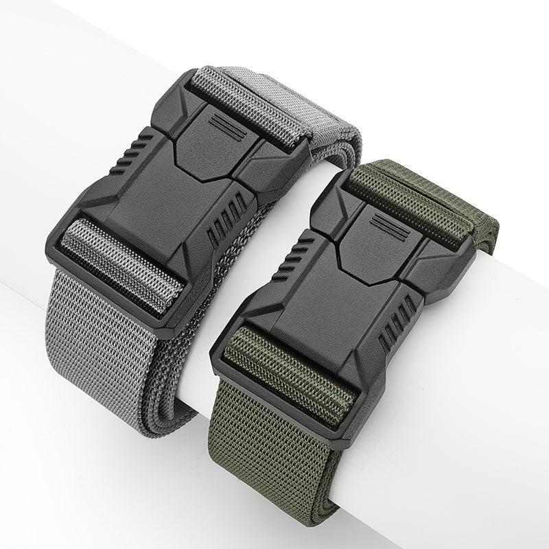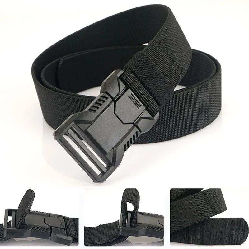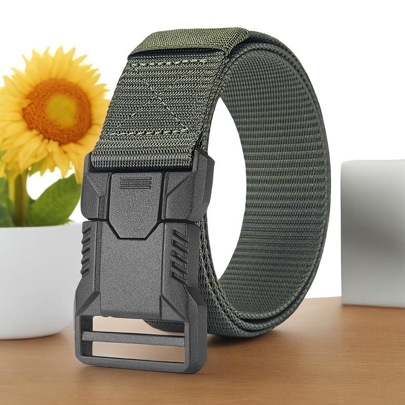 This men's belt features a quick release detachable buckle, making it convenient to wear. It is made of durable denim material with an anti-slip design, perfect for outdoor and casual use.
