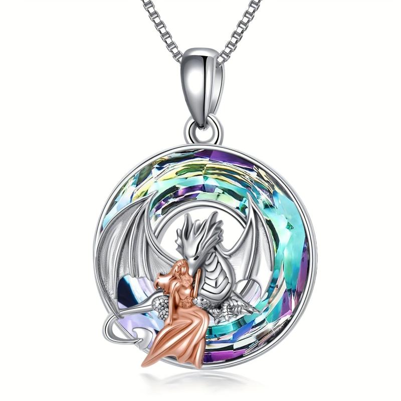 This stunning dragon pendant necklace features a synthetic crystal in a mesmerizing design. Made of high-quality 925 sterling silver, this jewelry piece is perfect for women and girls.