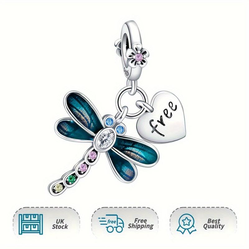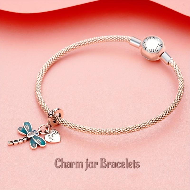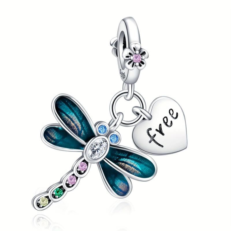Add a touch of elegance with this women's enamel dragonfly heart charm. Made of 925 sterling silver, this pendant is ideal for holiday DIY projects, bracelets, and necklaces.